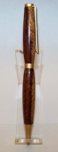 This is a slimline that I turned last night and used the PSI lacquer finish on. I used two coats. I really like this wood. I got it as a freebie from exoticblanks.com with my recent order. I never worked with it before but it is a pretty wood.