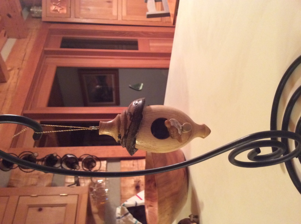 We have a little store in town that sells the birds in all sizes. The smallest one will fit on the mini bird houses and they come 2 or 3 in a package. I don't recall what the price is but will go get some later this week. I didn't get down there today but did get some of the rest of my running around done so I feel good about that. Maybe I will take all of my bird houses back to the shop and put the little perch on them and also the birds and that will give me some thing to do as I'm just about out of wood for turning. I have a little left over for scrolling so that is another thing I can do for now... Fay