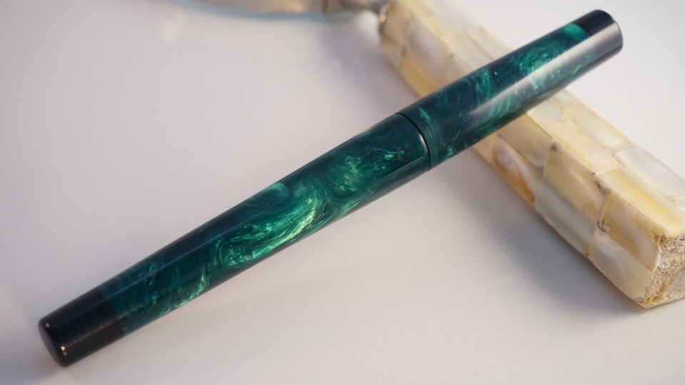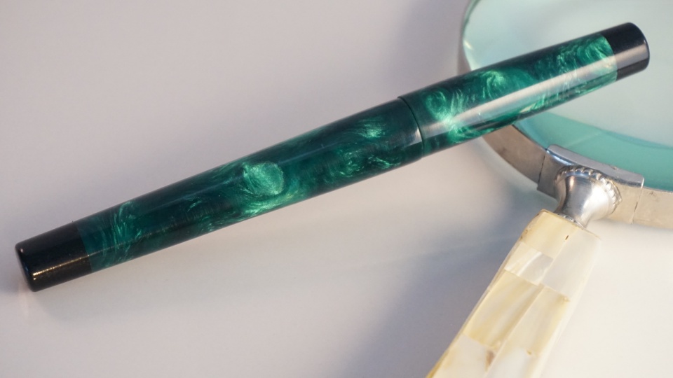 So with calipers and my eye I managed to shape the pen you see here. I made the nib section out of Ebonite and made the body of the pen a little longer so it feels good in my hand.