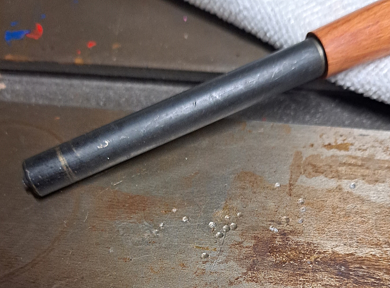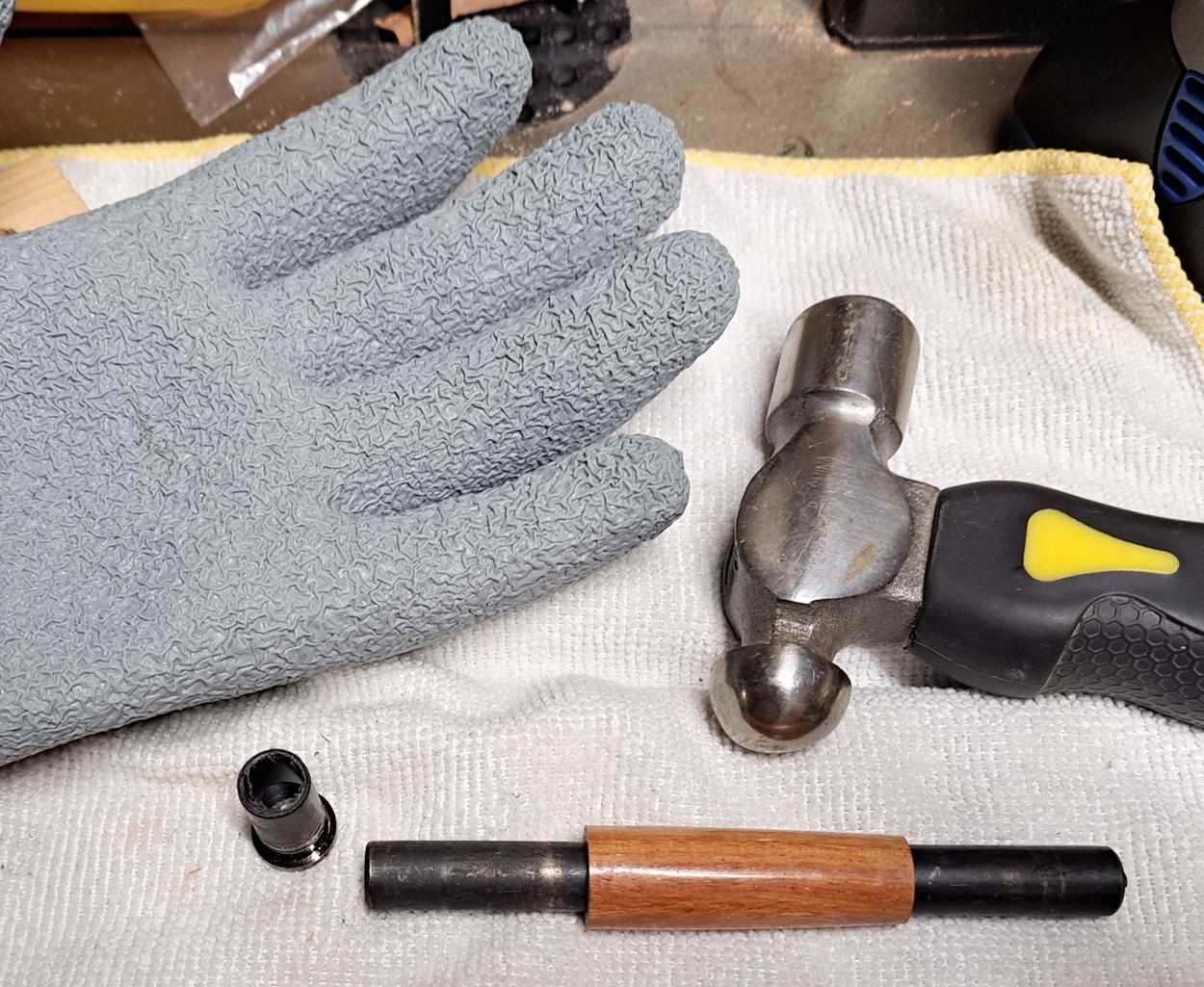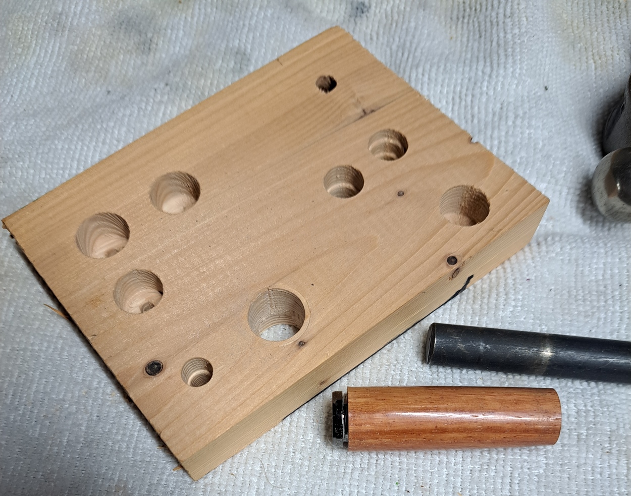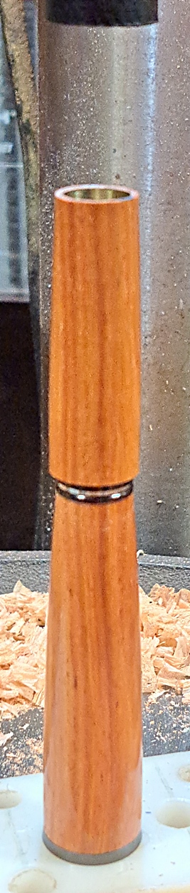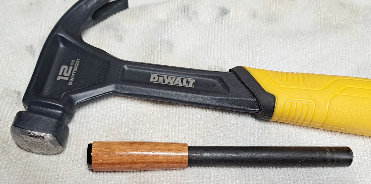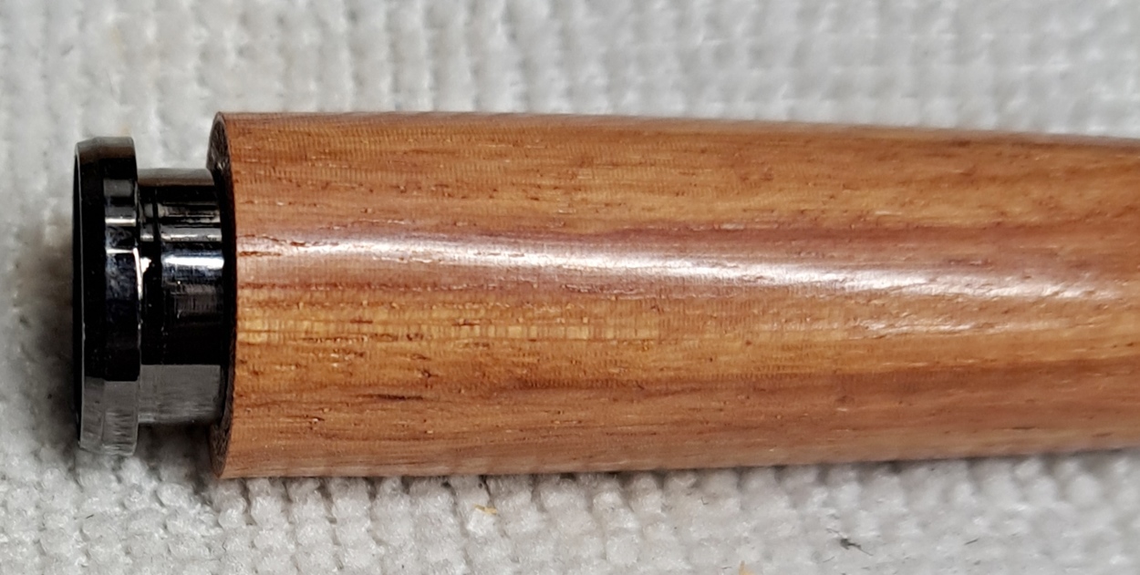 Like an idiot, I assembled the cap of a Panache pen wrong. My normal disassembly method is to hold the body with a grippy glove on my left hand, and drive the part out with a drill blank. I tried four progressively heavier hammers. Didn't budge at all. So I held the body in my right hand, and drove the drill blank against my cast iron bandsaw table. Hit it hard enough to put dents in the table. Didn't budge at all. Any ideas on how to disassemble it without damaging or destroying the body or the part?