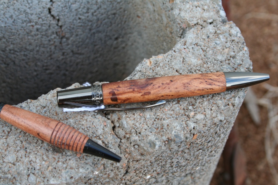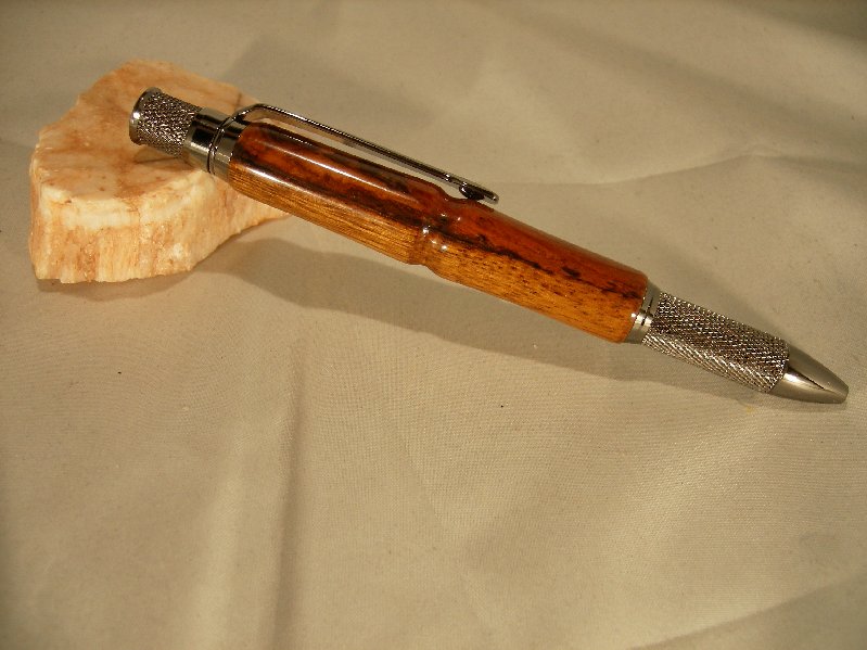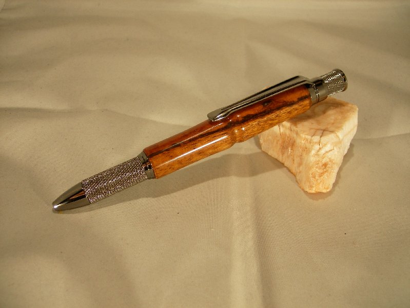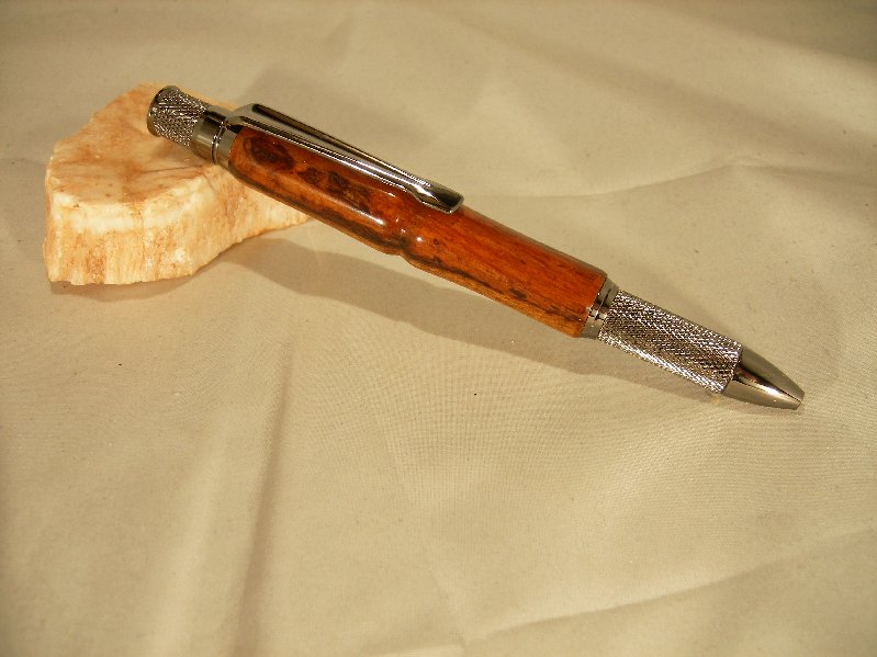 This does not happen to me very often, but I am at a loss for being able to identify this particular wood. I found an interesting blank at a local Rockler store for a new PSI kit I was trying out. The staff at the store could not ID the wood; it came from a "mystery" group of blanks. I paired it up with a new KnurlGT kit from PSI, and I like the outcome. However, I will invariably be asked "what kind of wood is that?", and at present, I will have to shrug shoulders. At first glance, you might think that this is a parallel segmented two-wood joining, but it's not. I am open for suggestions. I have furnished 4 views of the pen to give a better perspective. Thank you all in advance.