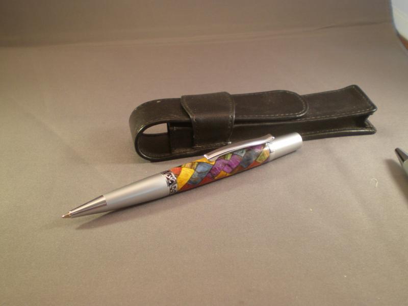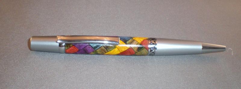 At our last meeting Neil did a demo of his 360 herringbone blank. When he finished it he gave it to me. I finally got the nerve up to turn it. My wife loves this pen, but she can't have it.