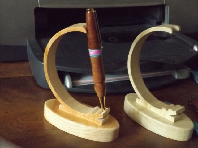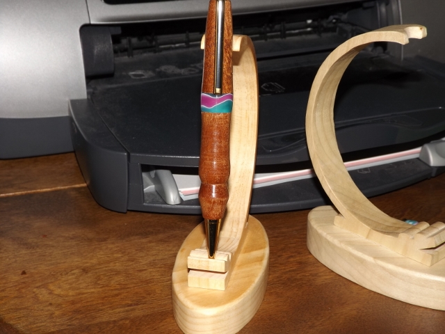 I just finished this pen today and I think it turned out pretty good. I had a few problems but I was able to fix that. I'm not sure what that wood is , but it was some I couldn't scroll but hey,,, I got a pen out of it. The ring is a piece of scrap left over from the Carabean Cove pen I made... One picture was taken with a flash and the other with out a flash...Enjoy Fay