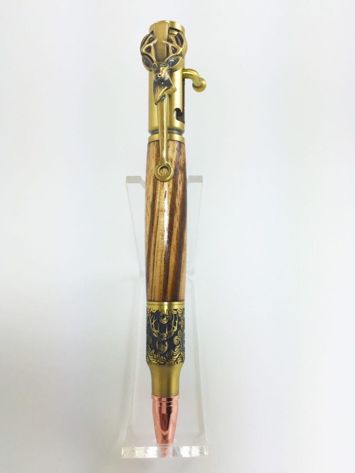 This is one of the new Deer Head Bolt Action kits in Antique Brass on Zebrawood. I think it is pretty cool.