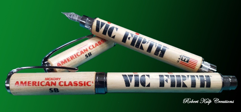 Just finished the second of two drumstick fountain pens that a client requested. These are not turned, but the ends are barely rounded over; just enough to meet the hardware. I lengthened the cap on both in order to accommodate the logo and I lengthened the body on just one of them.