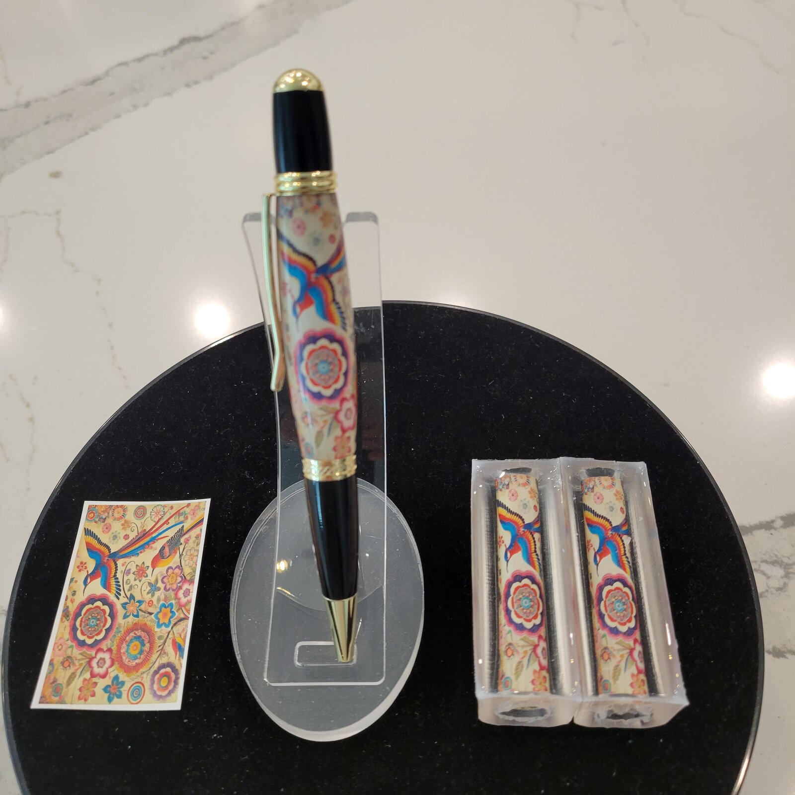I've added some new pen blanks including Whimsical Fordite, Chiyogami, and US Flag and Eagle pen blanks. These blanks are all very colorful and, as you can see from the photos, they can make some beautiful pens. The sample pens in the photos are Sierra Twist pens from PenKitsMall. These pen blanks and 100+ more can be ordered from my Etsy store. Enjoy a 10% discount on anything in the store with this link and coupon code: