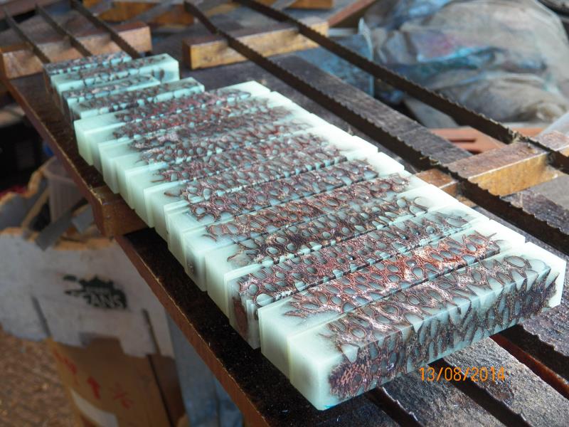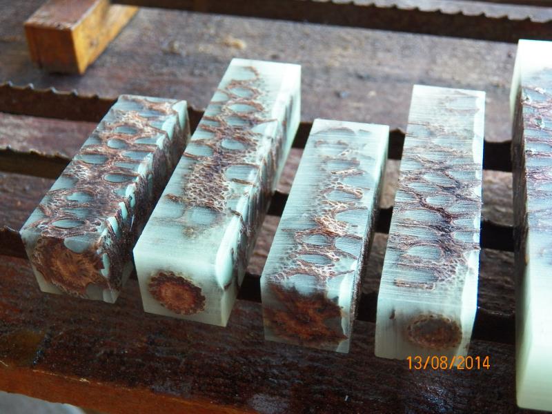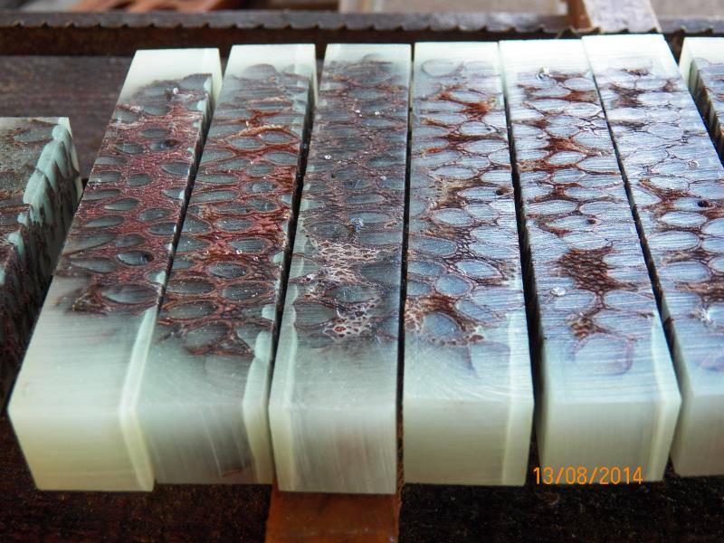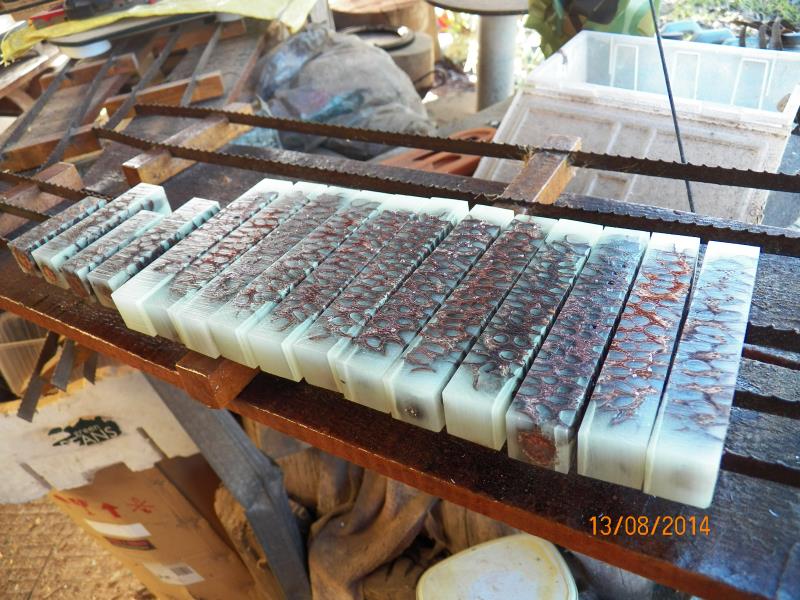 The next day, I got the out and done all my normal steps to finish them, leaving them with a coat of varnish, just before dark. I could see that, the best I could do, was not the best I do and the join was there, even though, and by dividing the resin into the 2 molds, I created a level that made the joint to be at the very top (or bottom) of the blanks.
