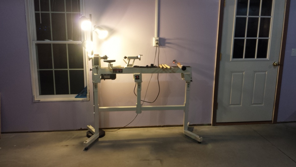 Her lathe! What she has done so far! She cant do pens until i get her a pen mandrel, she wants to do bottle stoppers so i will have to research what she needs for that as well. Woodcraft today if she is not working.