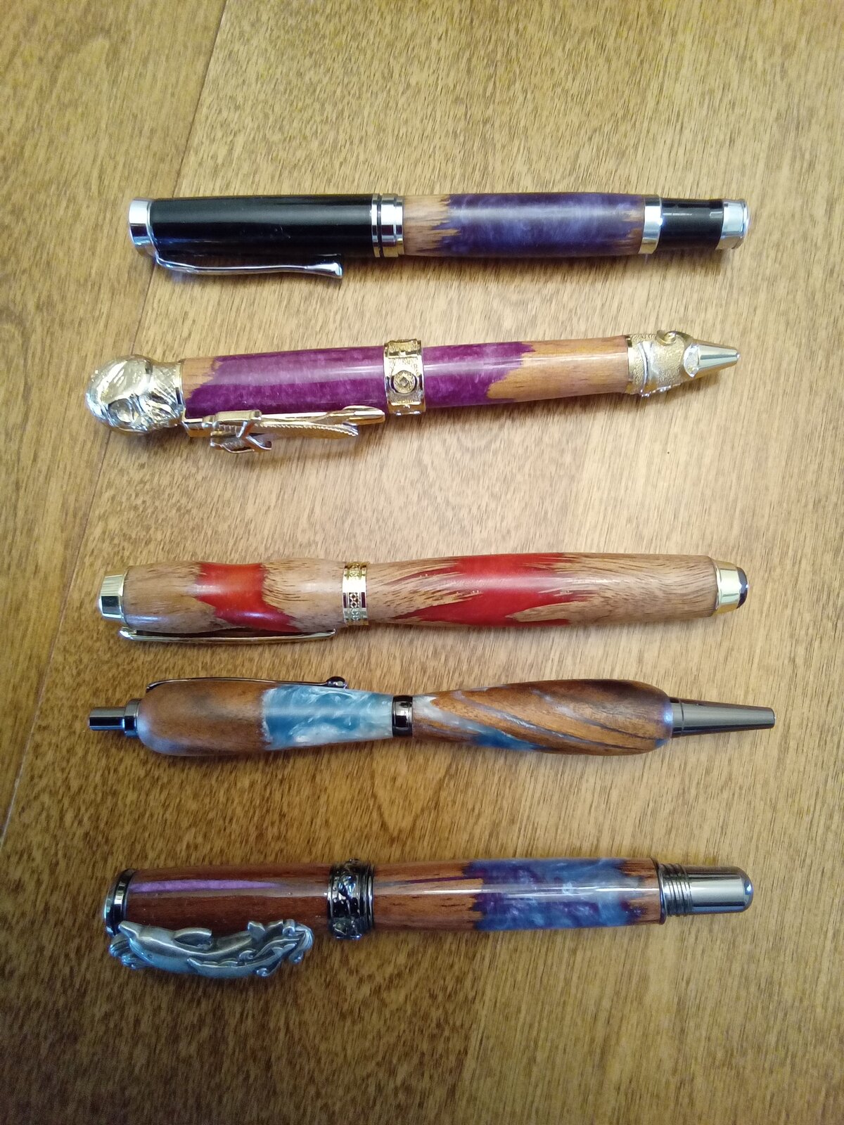 Yep, but not necessarily "natural." I take a blank, put it in the vice and hit it with a sledge until it breaks (lol). Spread it out a little, then put it an a mold, pour and pressure pot it. I get pieces of exotic hardwood flooring from a local shop so I end up with a lot of cumaru, jatoba, teak, wenge, and other goodies for cheap (99 cents a blank). Here are some more.Very Nice. - I've been thinking about trying to cast some hybrid blanks, but I have to make a block mold first. Am I correct in assuming that your "splintered" wood pieces were simply natural breaks? - Dave