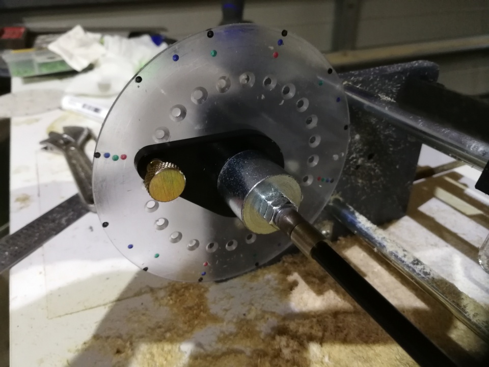 Got my PW a few days ago and have made an index wheel out of clear Polycarbonate. I chose this material as it is translucent and I could also put temporary marks on the front side with a whiteboard pen and the remove them once the job was completed