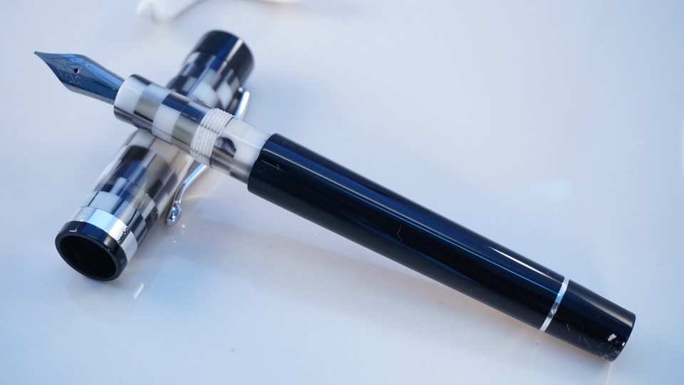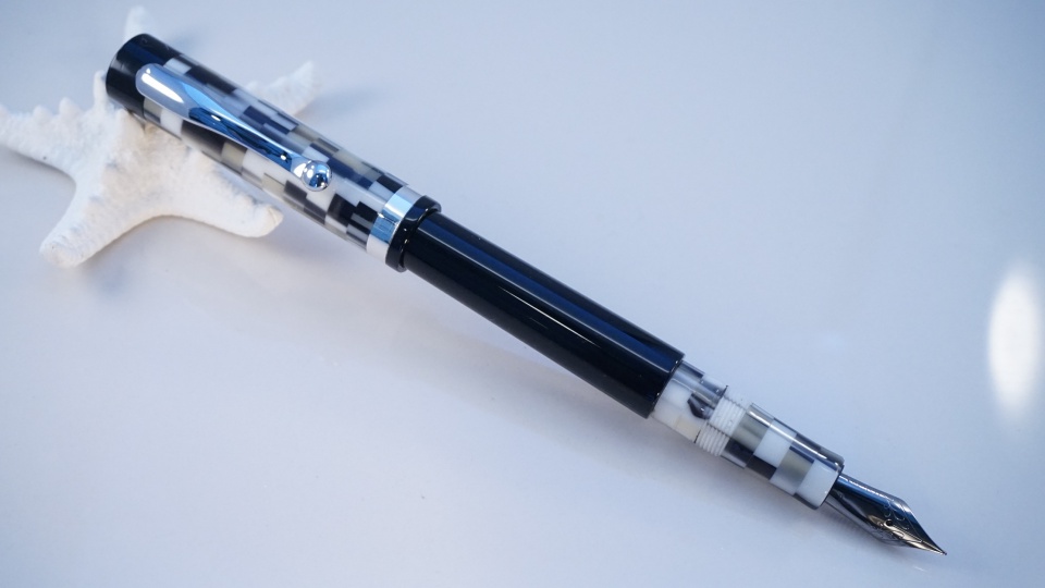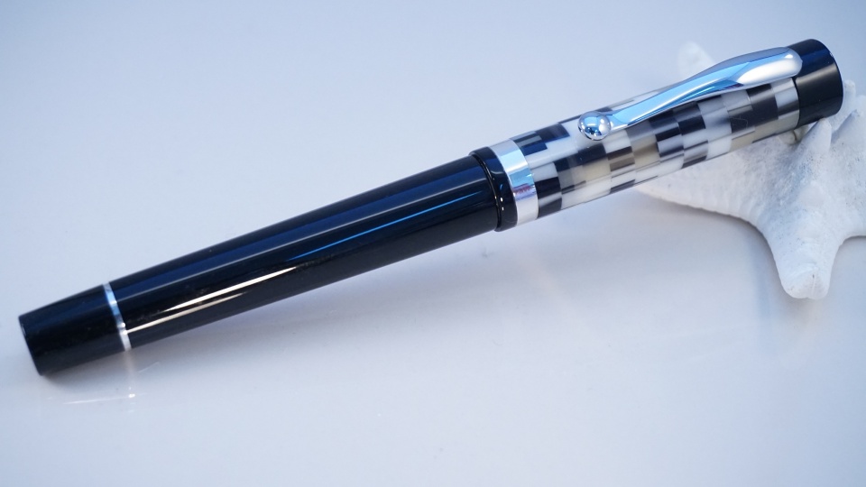 This one I'm calling the Aquila. It is my first posting, full custom and it features a clip (!) as well as Sterling Silver bands on the cap and the body. The nib is a Jowo #6 Fine in Ruthenium and inking is handled via a piston converter although you could eyedropper it if you applied silicone grease to the section threads.