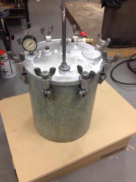 I have given up on my old Princess Auto paint pot conversion as I couldn't get it to hold pressure for very long and after several years of use. I concluded it wasn't worth the effort to rip it apart again to try and find that elusive leak, so I bought a much larger and better pot.