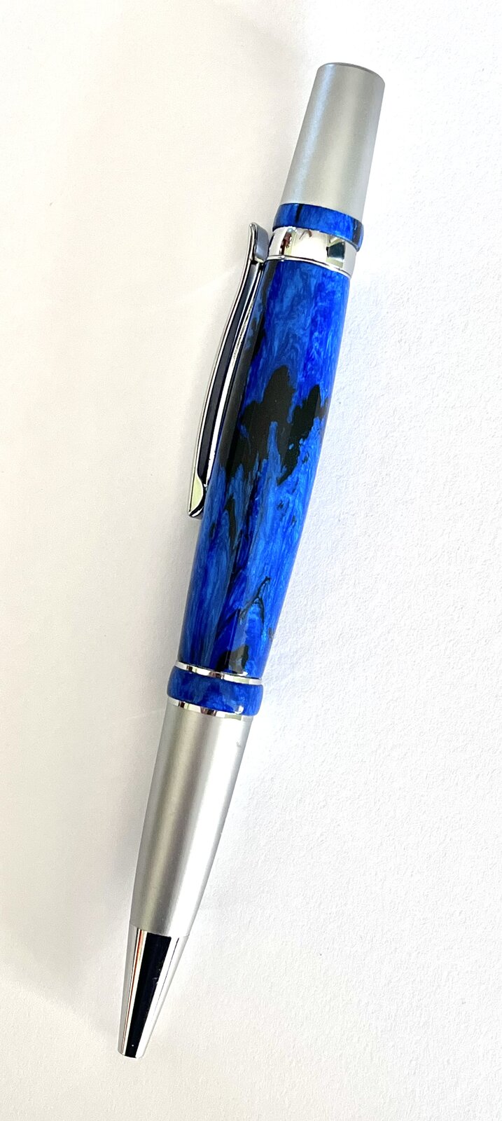 Second is a custom Sierra with a "left over resin" blue and black mica pearl blank I poured. replaced and added a custom band to the front and back of the pen. Sometimes I like to see if I can disassemble sets to make custom parts.