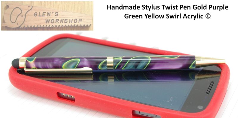 IMGP4653 GlensWorkshop Etsy Handmade Stylus Pen Gold Purple Green Yellow Swirl Acrylic 800.jpg