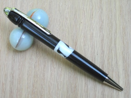 The last one is a simple slimline black enamel.Turned material is local wild cherry,this is the first I`ve tried to mill and dry.Finsih is ca topped off with carnauba wax.