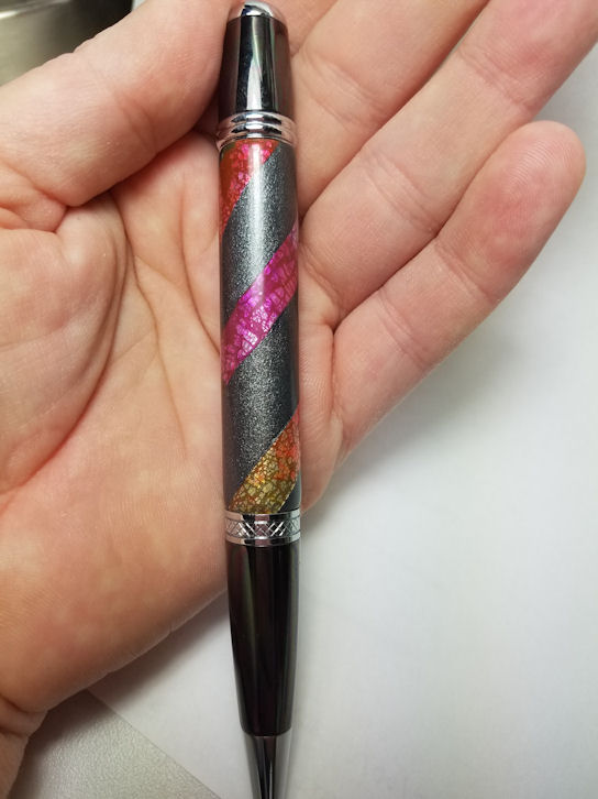 The pen with the stripe is also one of the blanks that are un-sanded and in my hand, so they shine up nice.