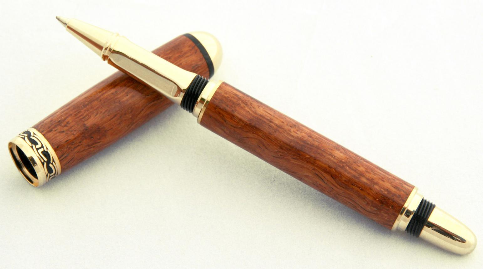 Afzilia sedona in gold. The finish is CA followed by Beall buff.