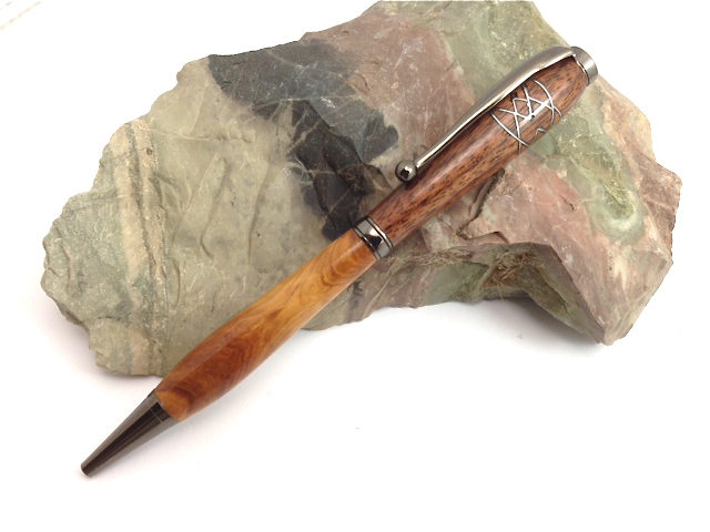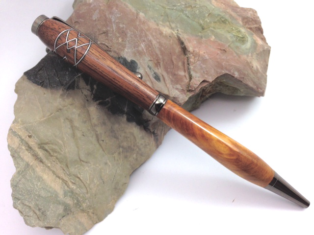 I had an idea yesterday during work for some different segmenting. I hurried home to give it a go. I did it quickly on a scrap piece of walnut thinking in it would just be a test blank but today I came home and tried to complete it with the tube in. I mated it with some old cedar burl. I kinda like how it turned out.