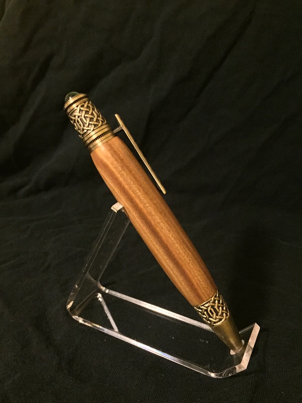 The second is a Celtic Twist pen in antique brass with an Argentinean Lignum Vitae blank (if memory serves). Finished with MM 3600 and two coats of Mylands Friction polish.