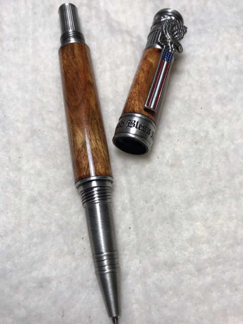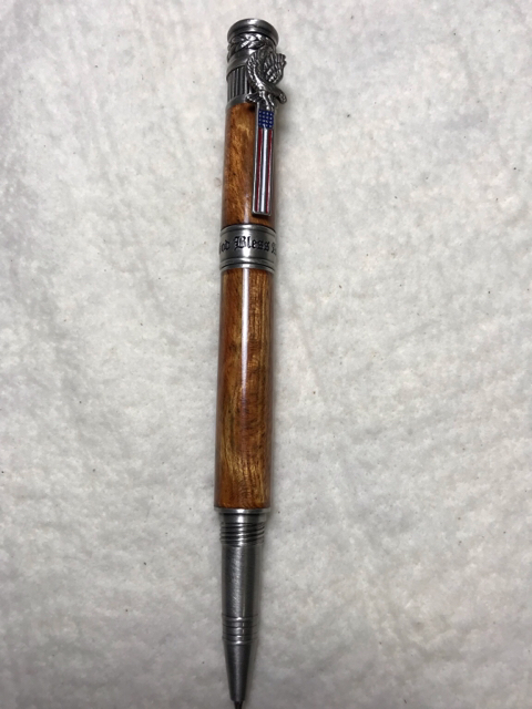 Found a piece of wood called Chechen. I had never heard of it, it was a very beautiful piece of wood, very highly figured. Here's the first pen from it. It turned and finished very nicely.