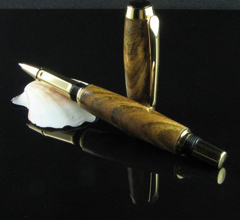 This was a diagonal cut piece of Zebra wood that I turned then mounted it on a Navigator kit. The wood was sanded with 150 grit through 600 grit, then micro meshed to 12,000. I applied seven coats of CA and eight coats of accelerator to it. Three coats thin CA to get a base, four coats to of medium CA. Accelerator was applied between each coat as well as before any CA was applied to remove any sanding dust particles. Then it was sanded with 400 grit and 600 grit and then micro meshed all the way to 12,000. To bring out the grain and adding that luster finish was done with three coats of Meguiars Gold Class Carnauba Plus paste wax. (Yes, it's car wax). It resists oils from your skin and also any skin acids. It also does not smear or show finger prints as some wax's do. And as they say in Hollywood, "That's a rap". Hope you like it, all comments welcomed.