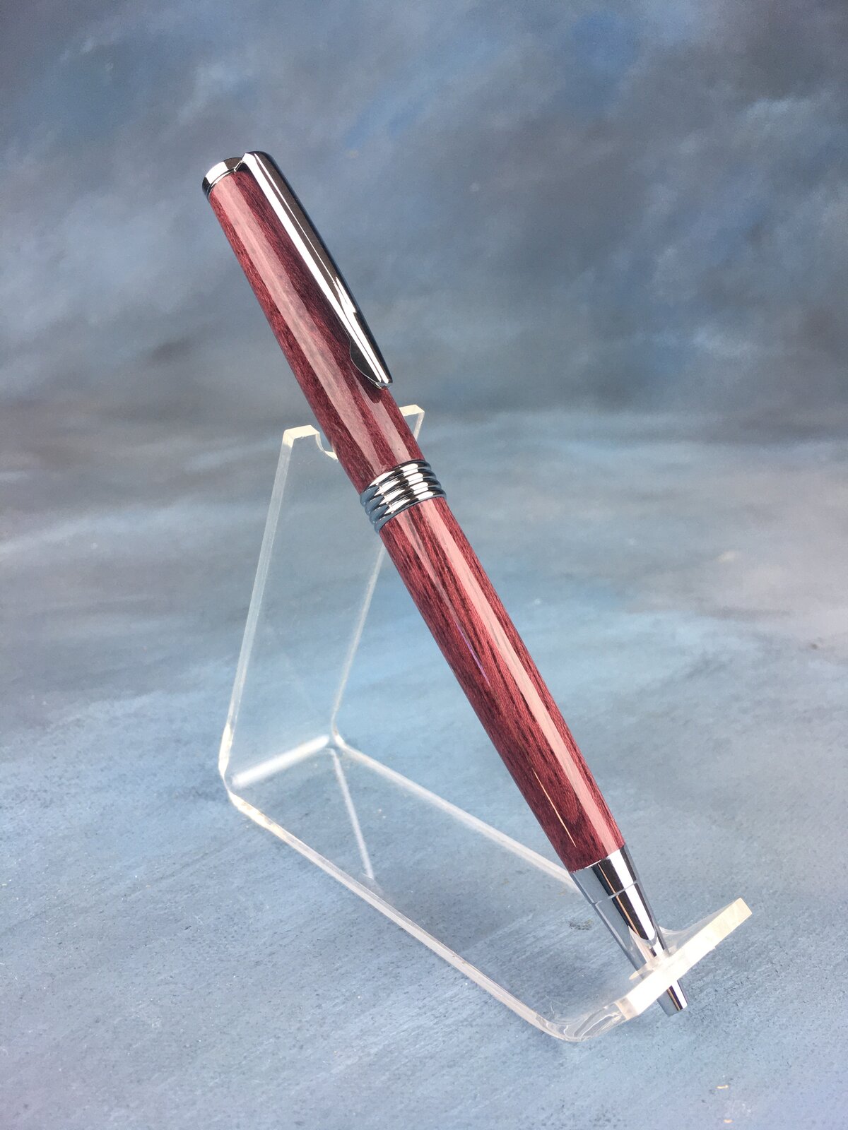 I need to crank out a few wood Saturn pens and here's the start. There are two photos of the figured Zebrawood since it was very interesting to me. The diagonal red Zebrawood, purpleheart, bloodwood, bubinga and Padauk round out this first 6 of 49. I'll keep truckin'.