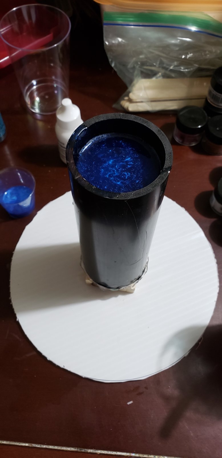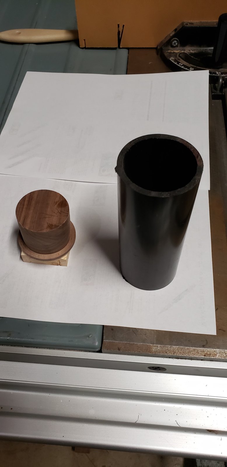 1. Using 2" PVC pipe I turn a walnut base that fits snugly into the pipe. I put the walnut in one end of the pipe and seal it with hot melt glue (spray with mold release BEFORE putting the walnut in pipe)