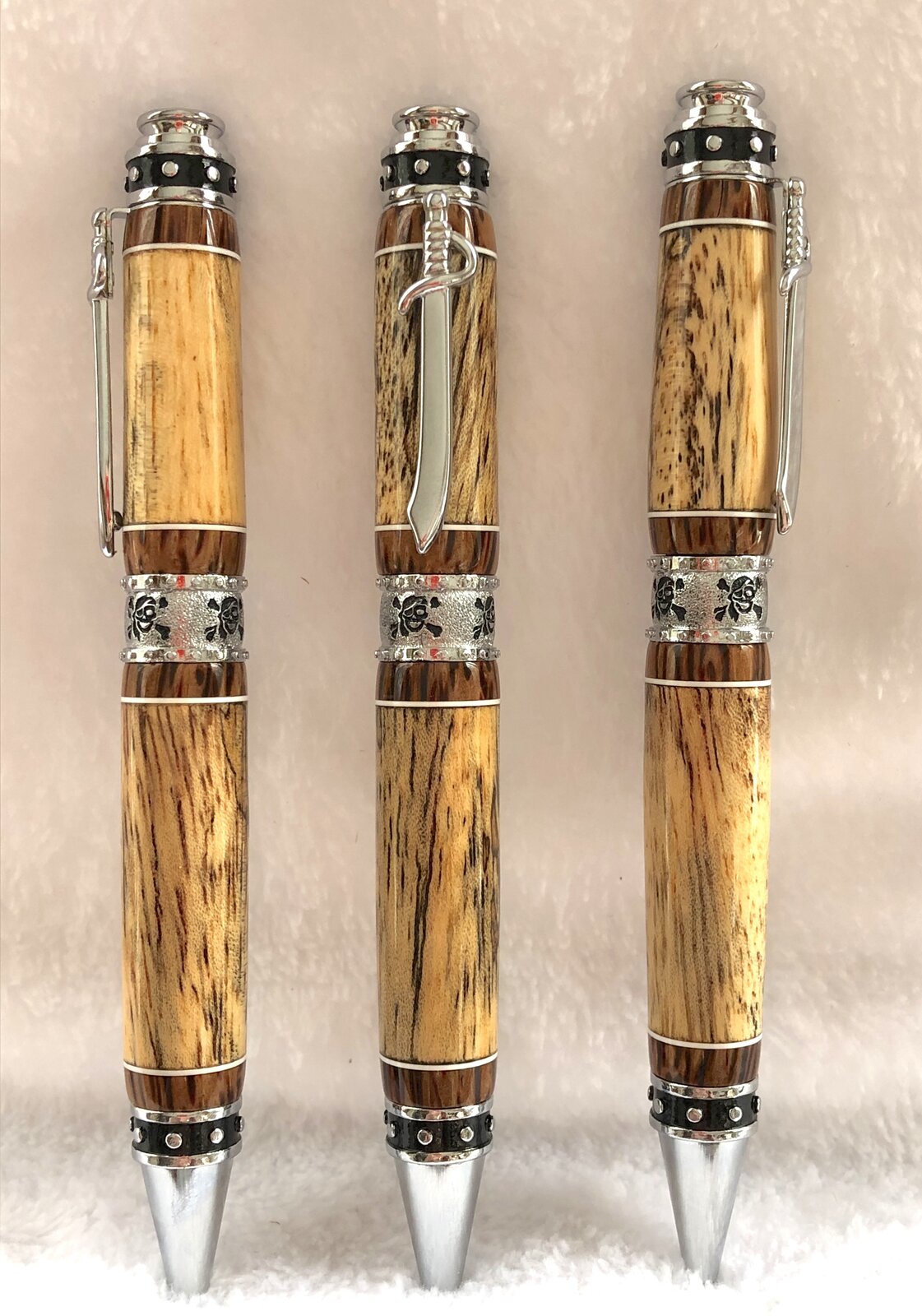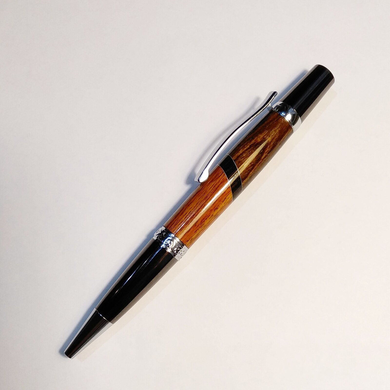 A simple segmentation on Polaris kit with CA matt finish. Swartzia, ebony and styrene accents.Segmentations on Sierra pen and Hurricane fountain