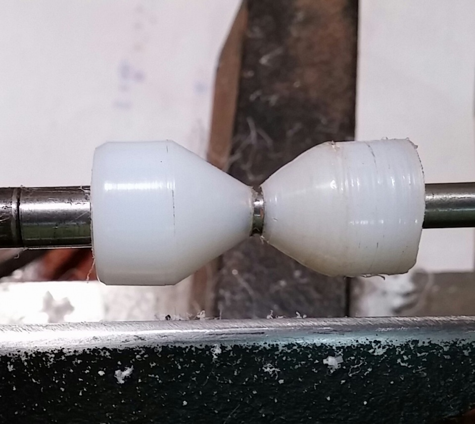 I bought a couple sets of commercial bushings and over several months lost them up the dust collector or in the noodles on the floor. Then I realized I had a block of PTFE and wondered if I could make some. They aren't pretty but they work just fine.