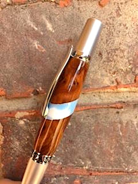 My son is getting his doctorate this spring at NC. His "doctorate" team is made up of 5 professors and he wanted to give them a special gift so he asked me to come up with something. I found a blank that is actually called "Carolina Blue" and segmented it with Thuya Burl. As always C&C welcomed!