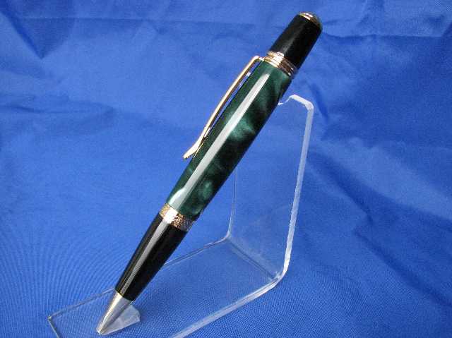 This is a 24K Gold Sierra from Ernie at Beartooth Woods. The blank is Aurora Borealis from Woodpen Pro. Once again, let me say that these blanks from Woodpen Pro are a dream to turn. They turn like butter and polish like glass. As usual, comments are welcome. Thanks for looking.