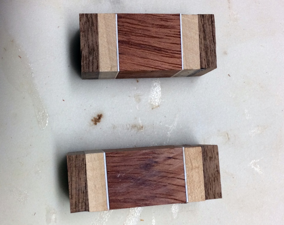 So the lesson I learned is that a segmented blank like this would probably look ok on a single barrel pen, but not on a 2 piece.