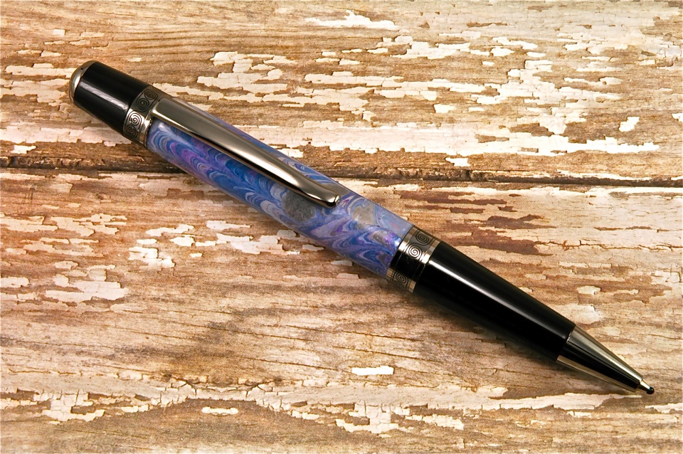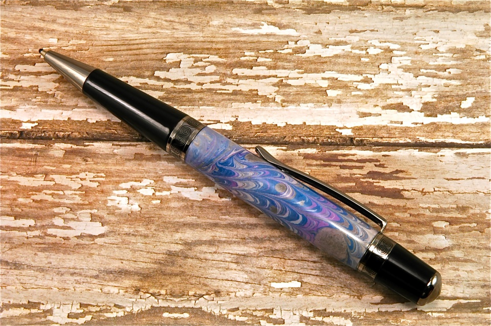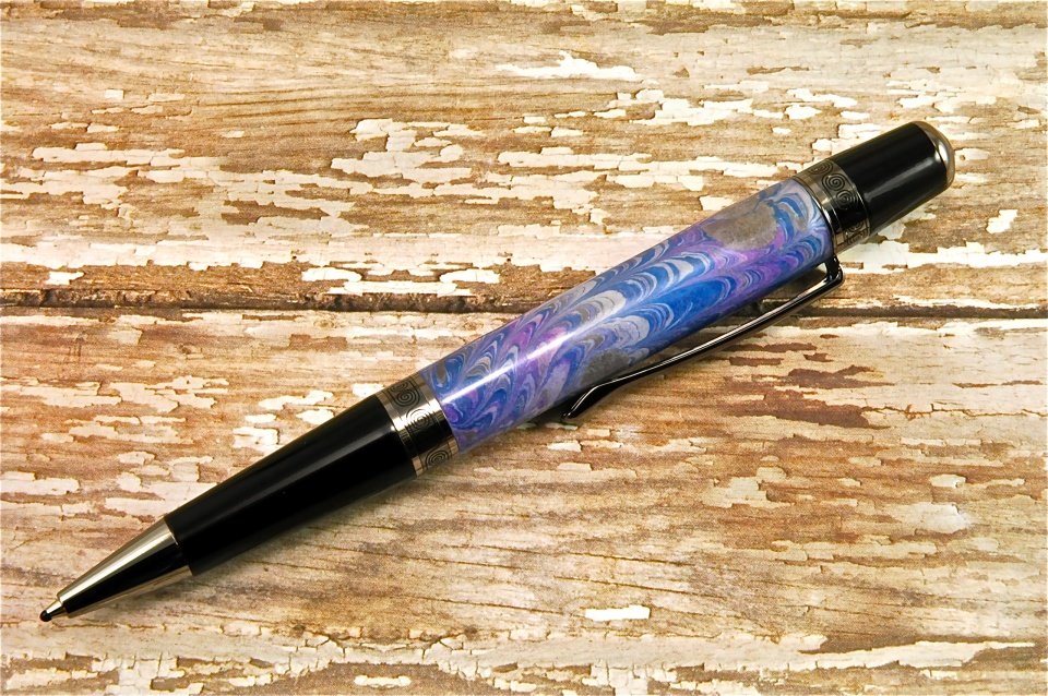 Hand made, purple themed "marbled paper". Cast in Alumilite Clear.