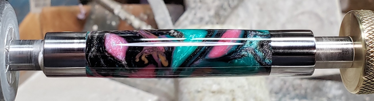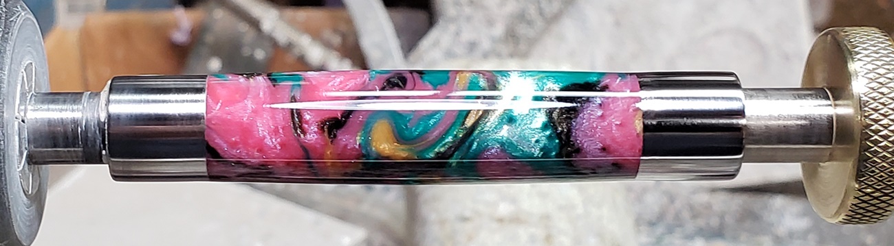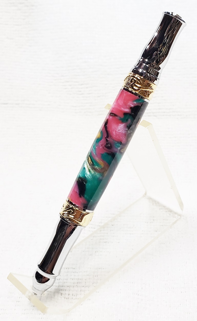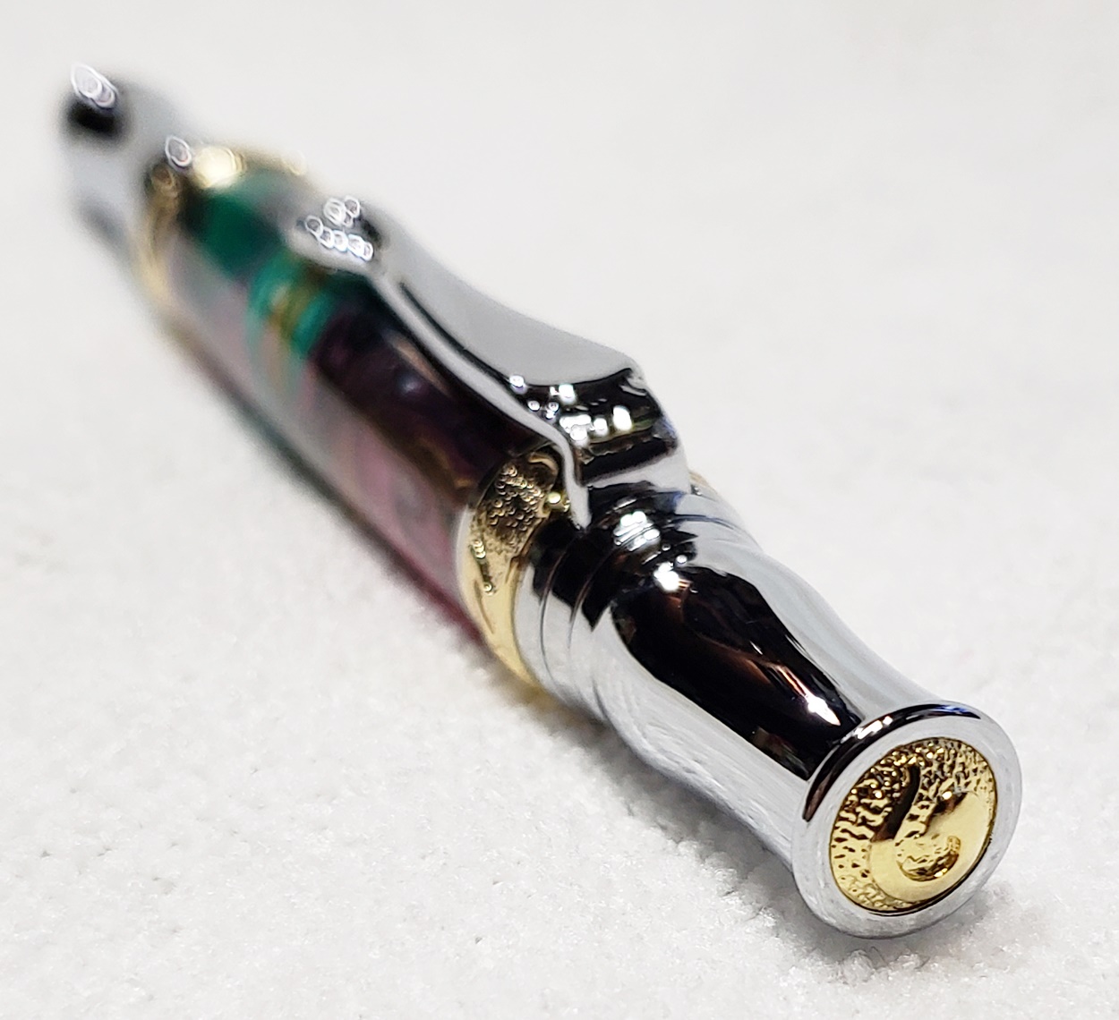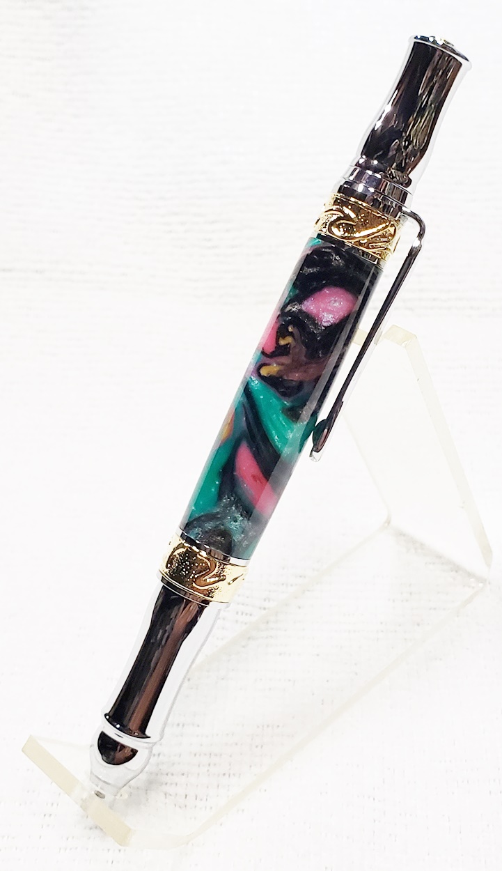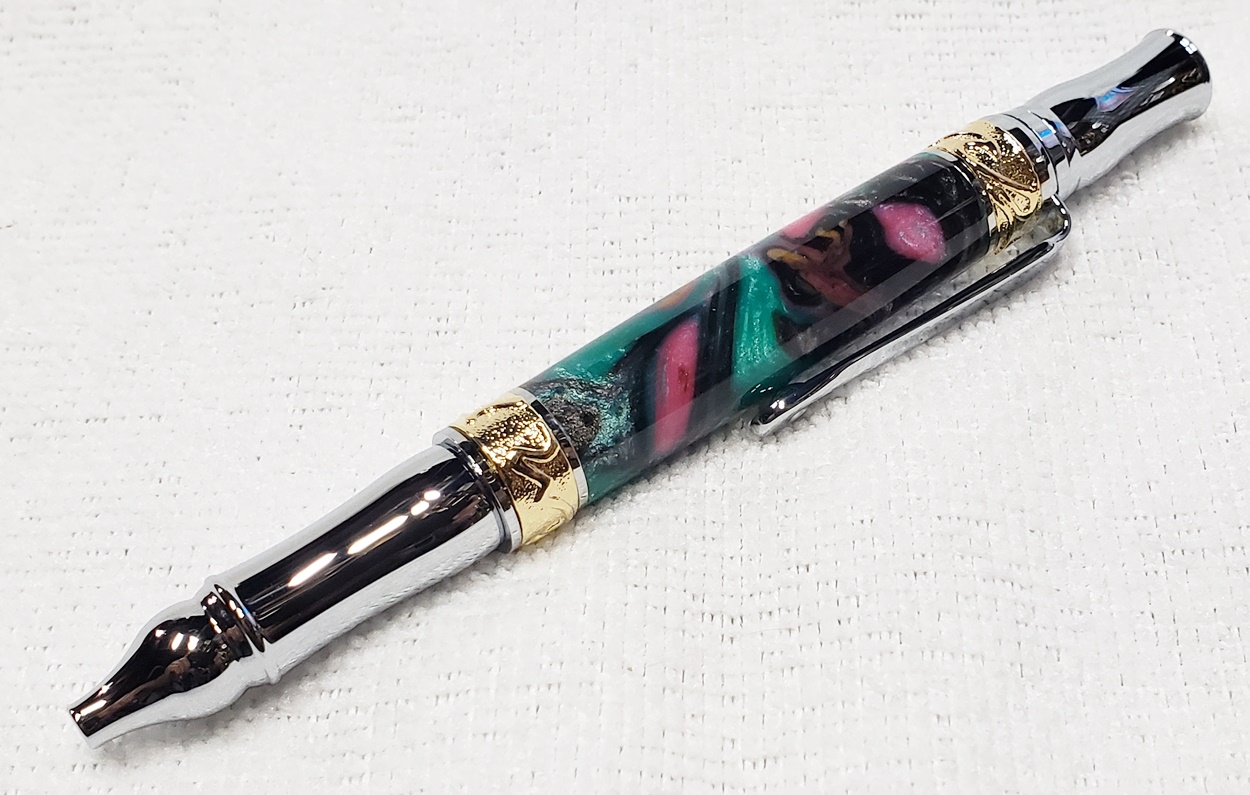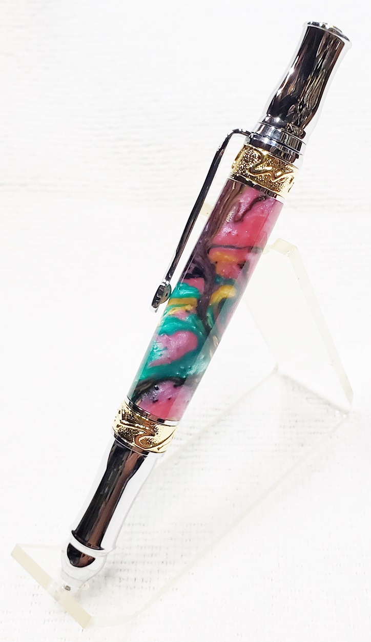 This is a PSI Nouveau Sceptre twist pen, in chrome and gold. The blank is an inlace acrylester from Woodturningz called Abalone. Very, very pretty blank. Made a great looking pen.