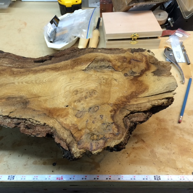 A friend gave me this oak burl and I just tried to keep it together. Filled in some of the voids with crushed turquoise but not all. I must admit - it looks nice. 6" wide by 3.5" high. As always - c&c welcomed!