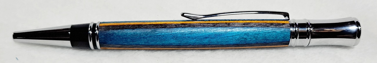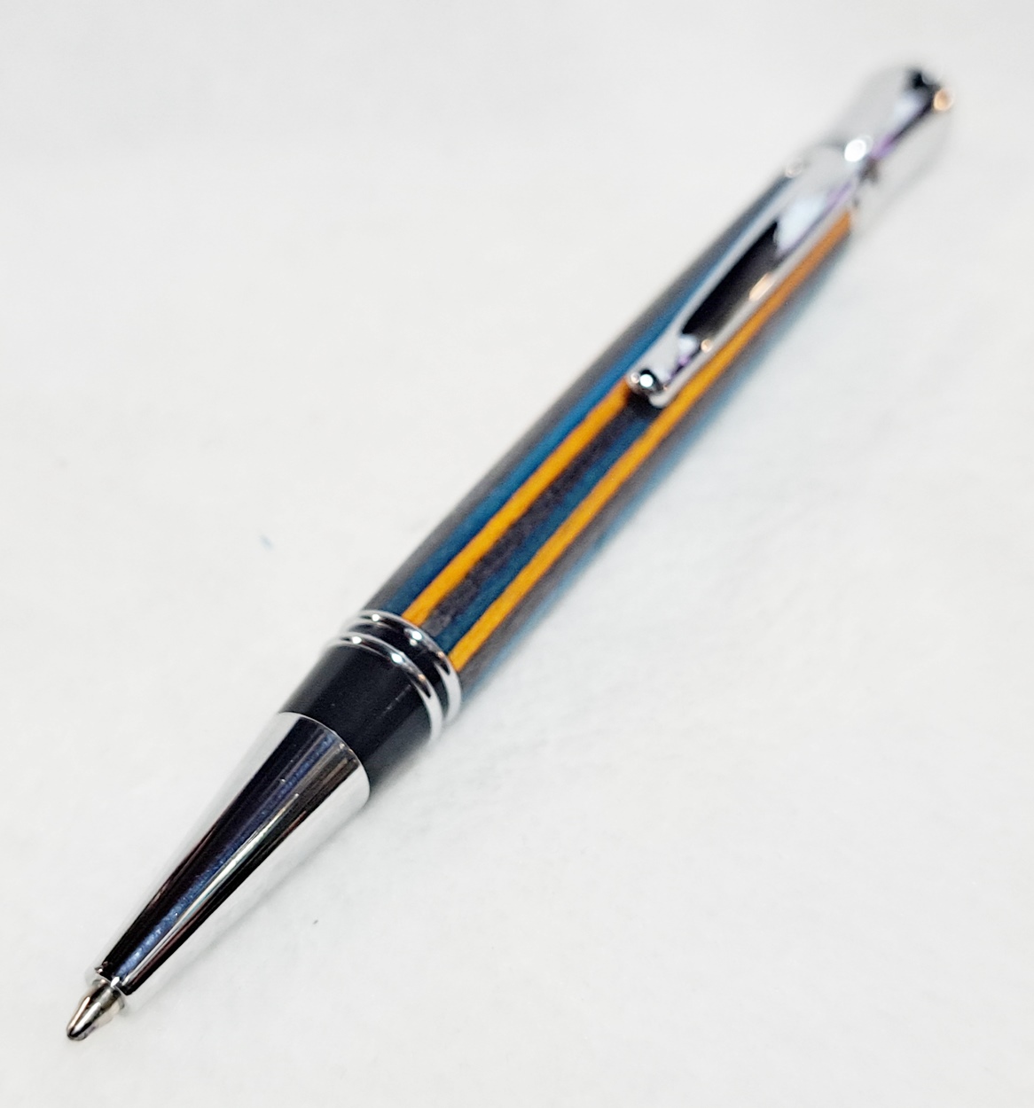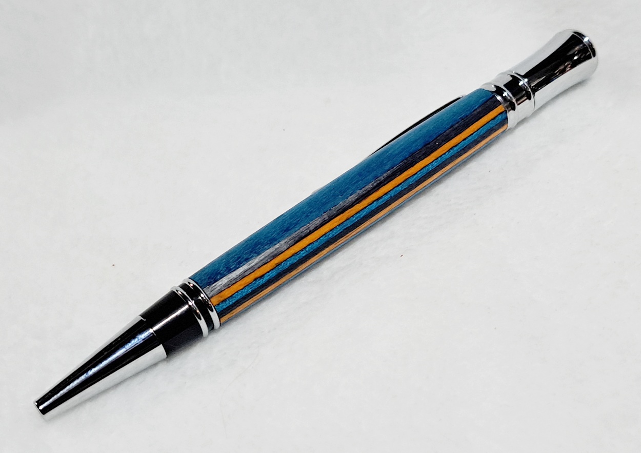 This is an Officer twist pen in chrome, from Crooked Mill. It's a copy of the PSI Executive. The blank is a laminated. Someone here sent me a bunch of these years ago. The finish is Pens Plus.