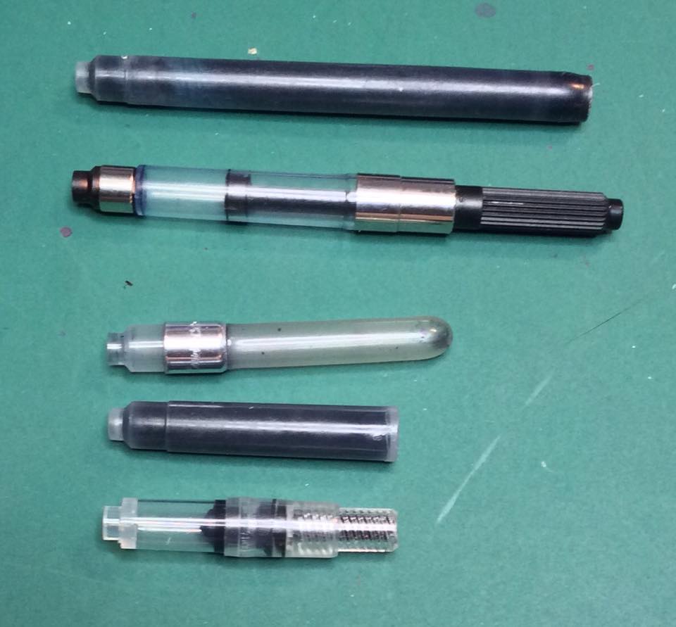 Here we see the standard long international cartridge size on the top, below that is the short cartridges and converters available.
