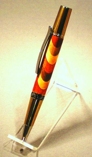 LOML and I were in Woodcraft just browsing when she spotted one of the new segmented blanks Woodcraft is now offering. She picked one up, looked me in the eye and asked :could you make ME one of these?" Which translates into you WILL make me one of these. Any ways, the segmented pen is a ready made blank. The acrylic is one I get from AZ and has been a good seller on my high end pens. Thanks for looking and as always all coments are appreciated.