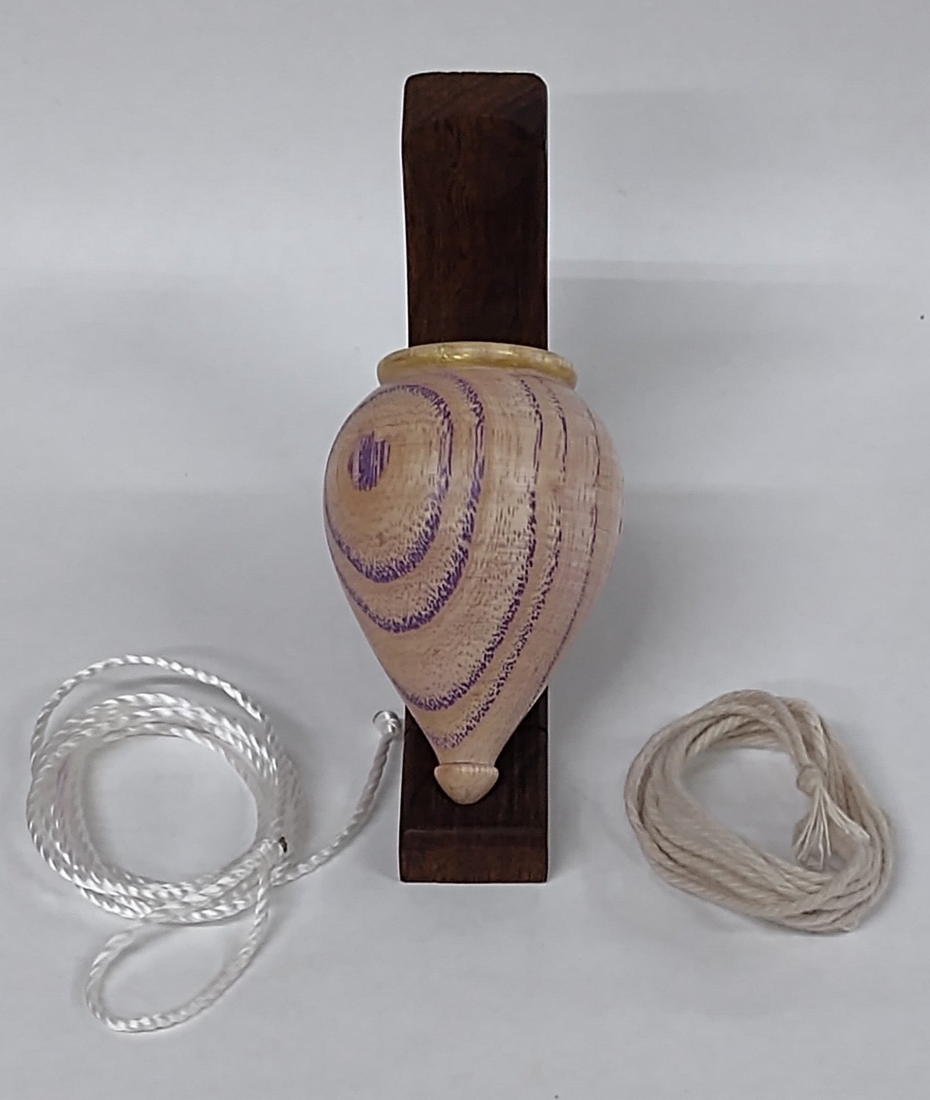Our turning clubs challenge for December is to turn an old fashion throw top. Spent a lot of time as a kid on the playground at school having battles with other kids tops. The older members of IAP will know what I'm talking about. Turning a top is fairly easy using Jim's templets, but getting it to spin is a whole other ballgame. After about 100 failed attempts, I'm done. Time to move on to another project. I watched youtube videos, used nylon string, cotton string, hell, even bailing twine, nothing worked. I guess that part of childhood is gone, never to return. I guess I could blame it on the Purple and Gold coloring!!!