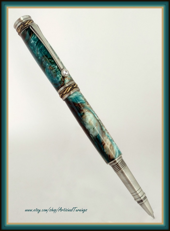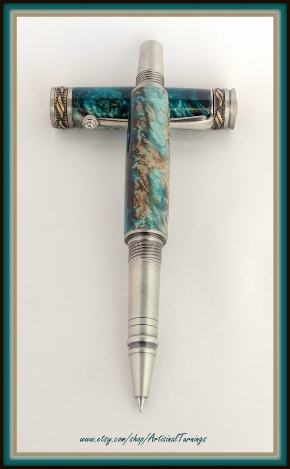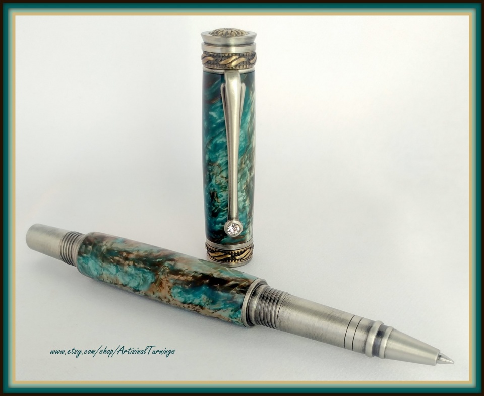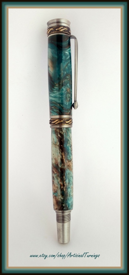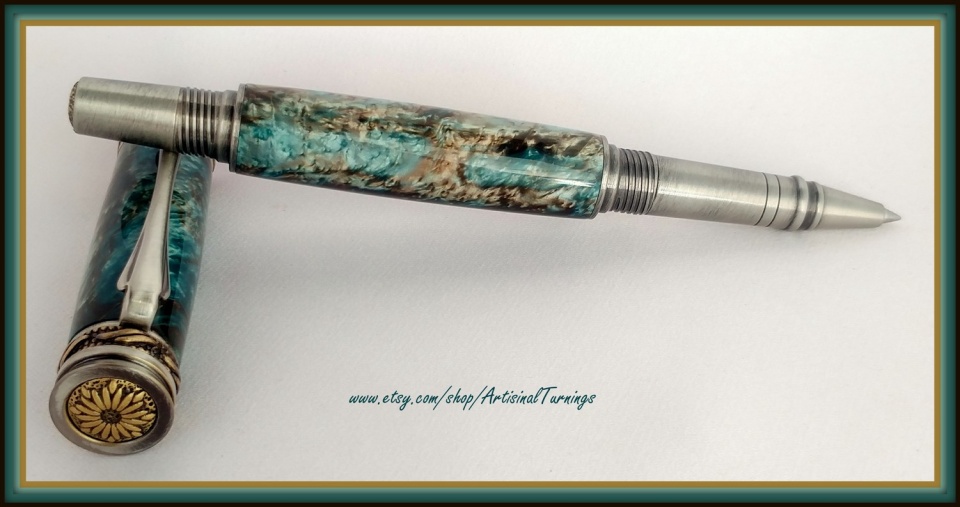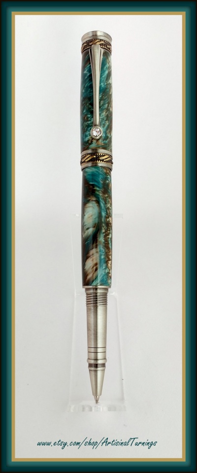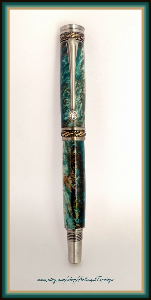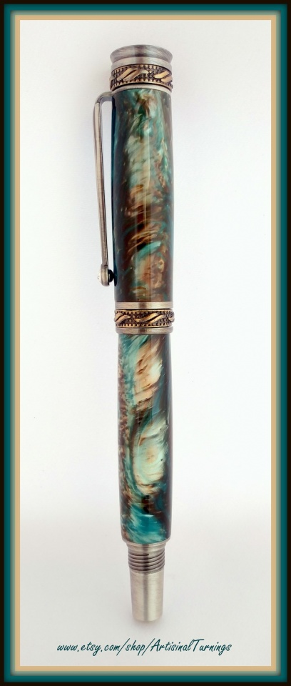 The blank used for this antique pewter and brass Majestic Jr is called "Olive Grove" though I couldn't tell you why. This is the second in my "Pens for Purses" series.