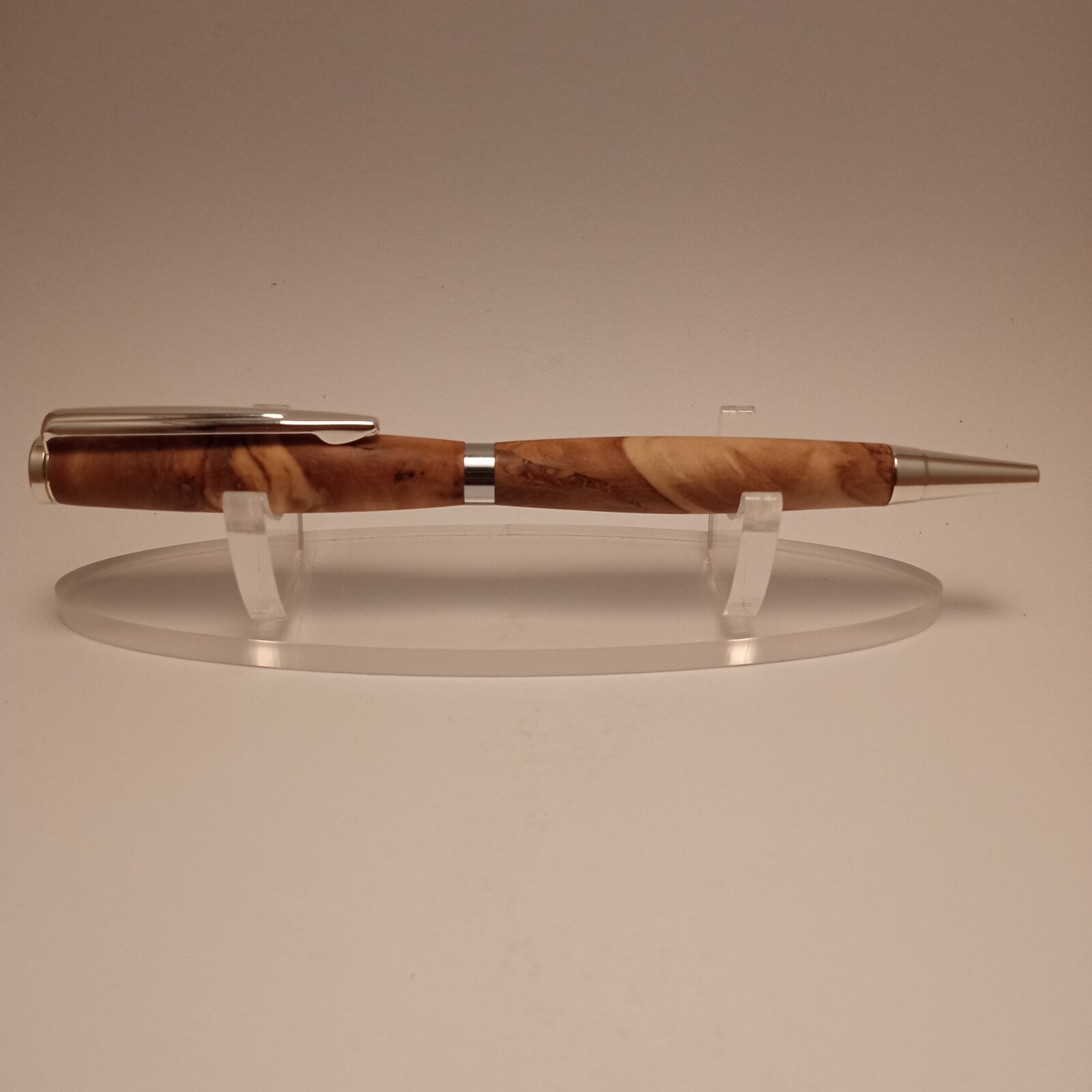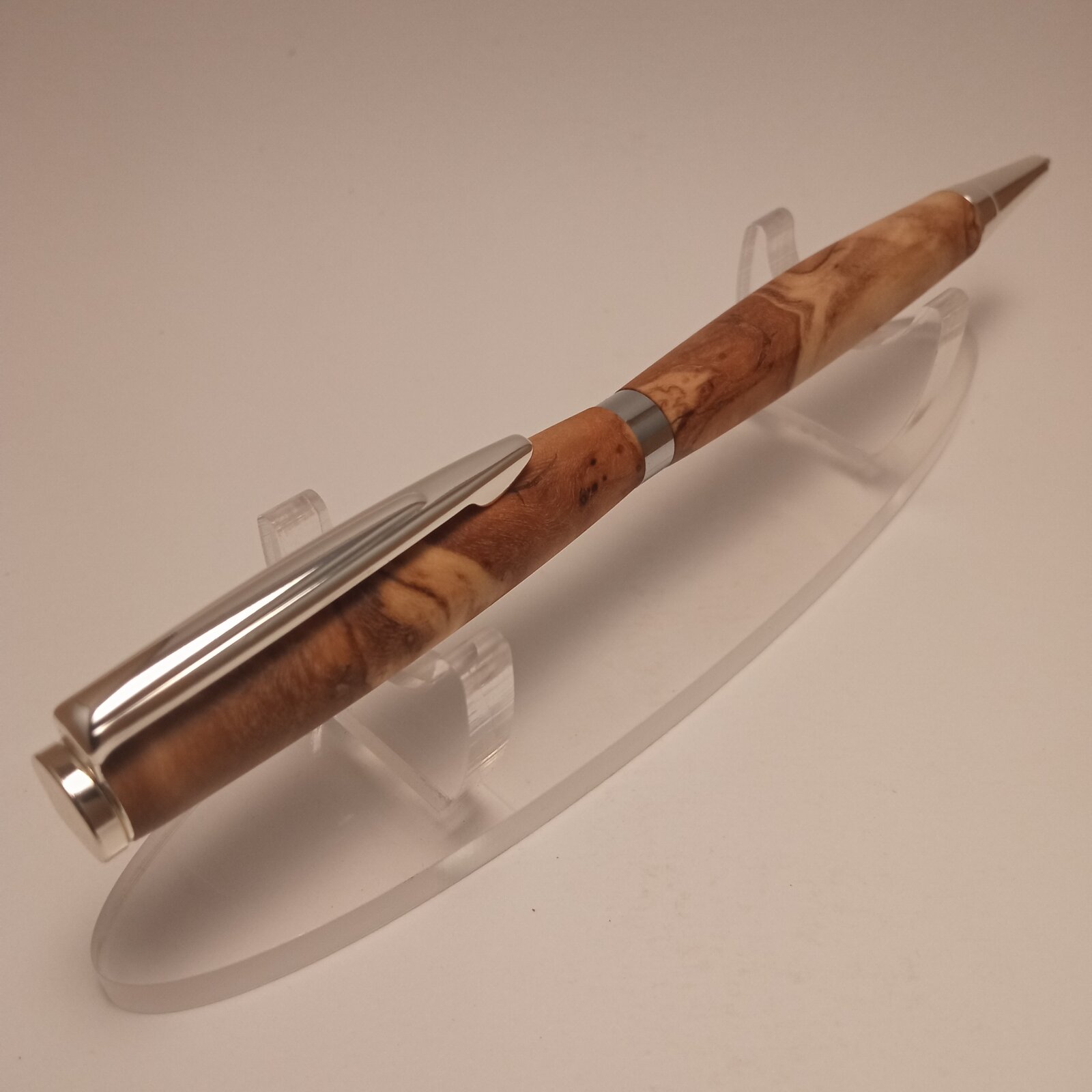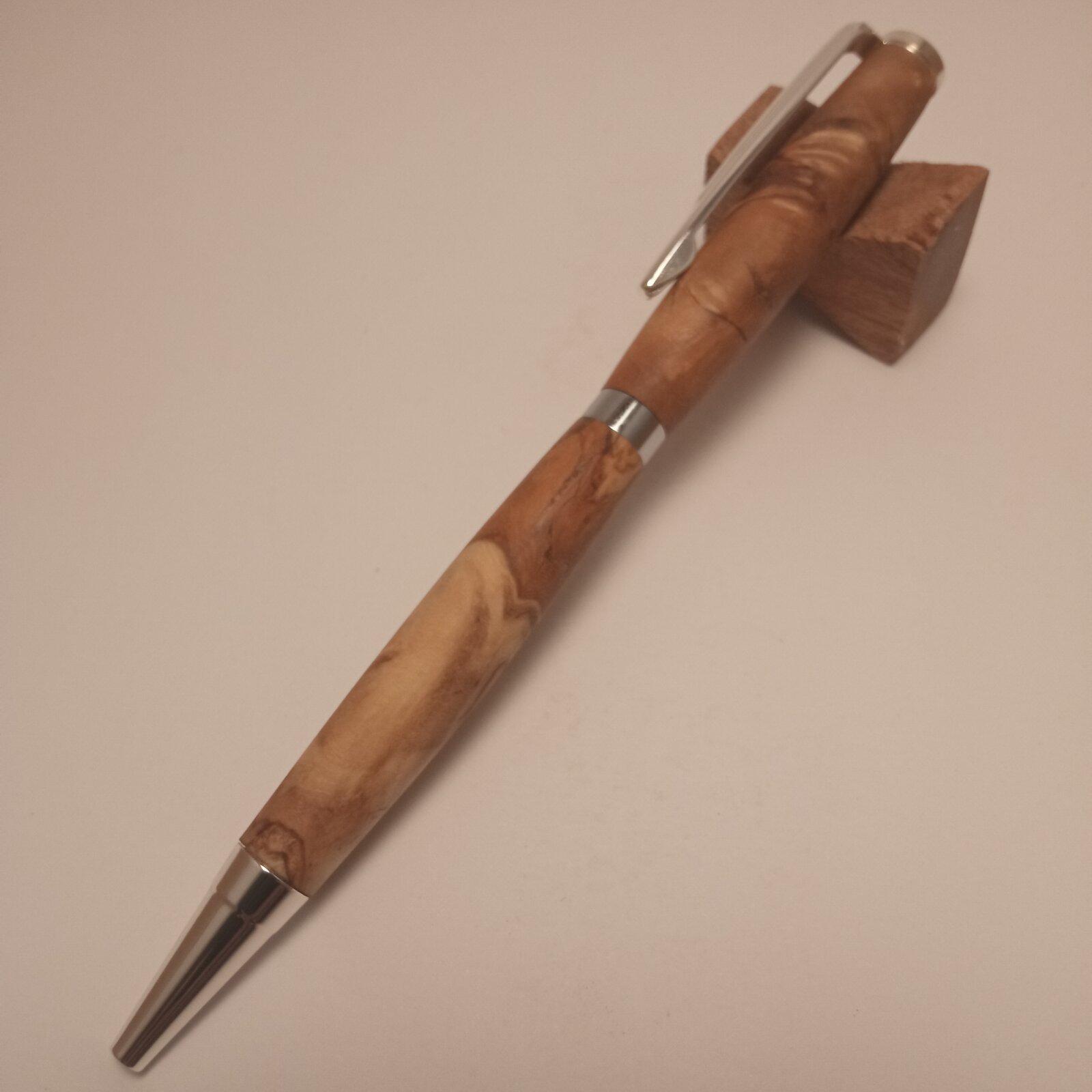 This is an olive wood burl slimline i finished yesterday; it was an experiment to see if that wood could be turned like that (without stabilisation). I am not sure if this can be technically called a burl. It was harvested from the lower part of the tree, exactly above the root, where many suckers develop. It has many cracks that i filled with ca, wet sanded until 1500 grit and finished with oil. Cheers