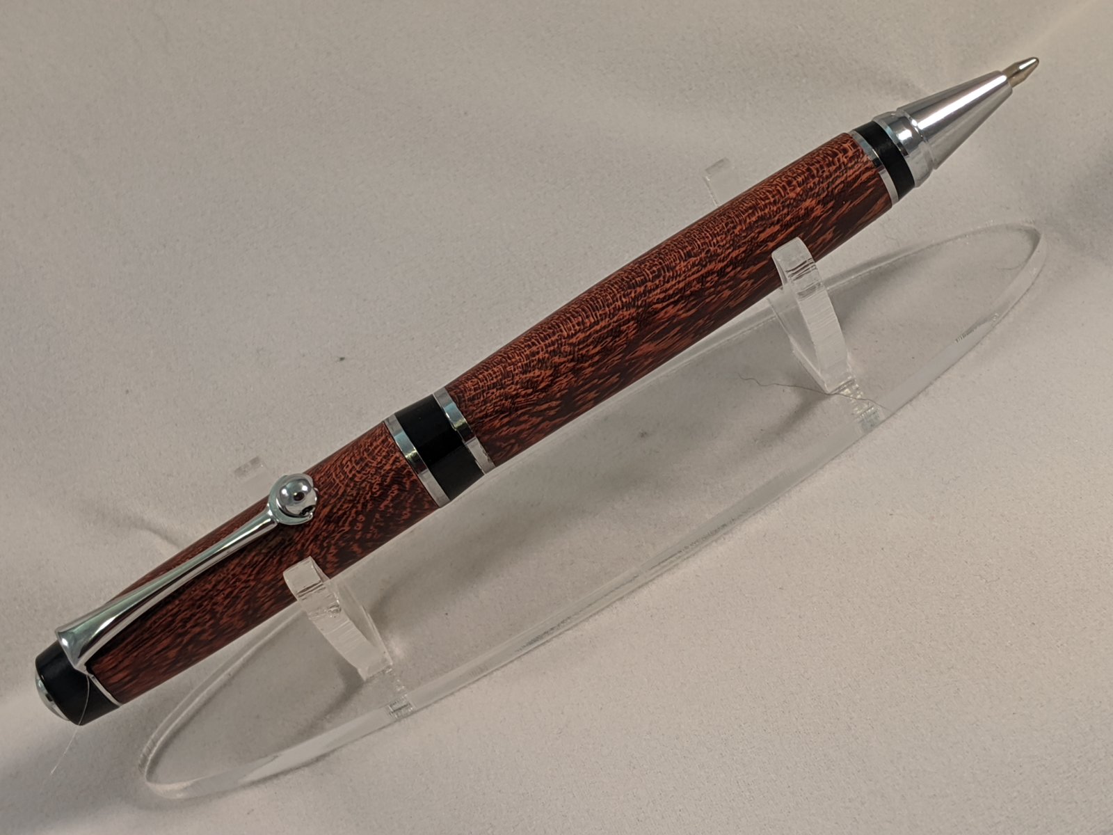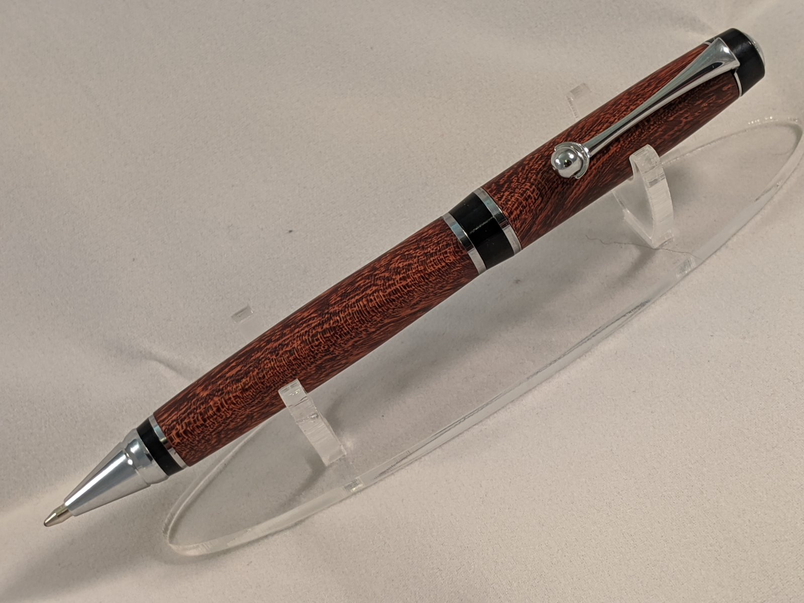 Nice job. I made a couple of pens from Camelthorn, one by specific request. OMG that is one hard wood. I blew up three blanks before I got one done. It is beautiful wood though.Olmsted Chrome w/ Camelthorn sanded to 8,000 grit. finished w/ shellawax