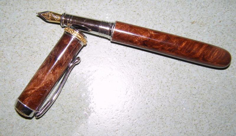G grumpyoldman Member Joined Feb 13, 2009 Messages 6 Location 35 Syme St,Whyalla South Australia 5600 Nov 11, 2011 #1 A JR STATEMANS made with a Maple Burl with a bronze dye added. A beautiful pen many thanks Trevor