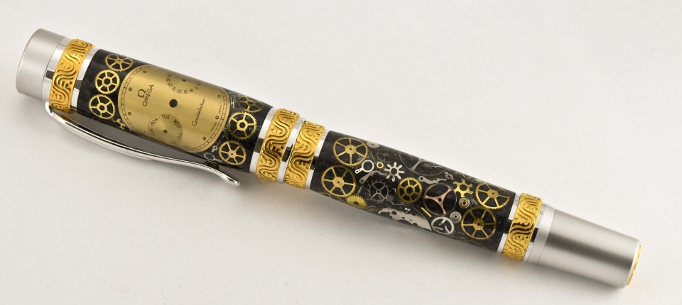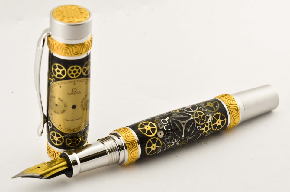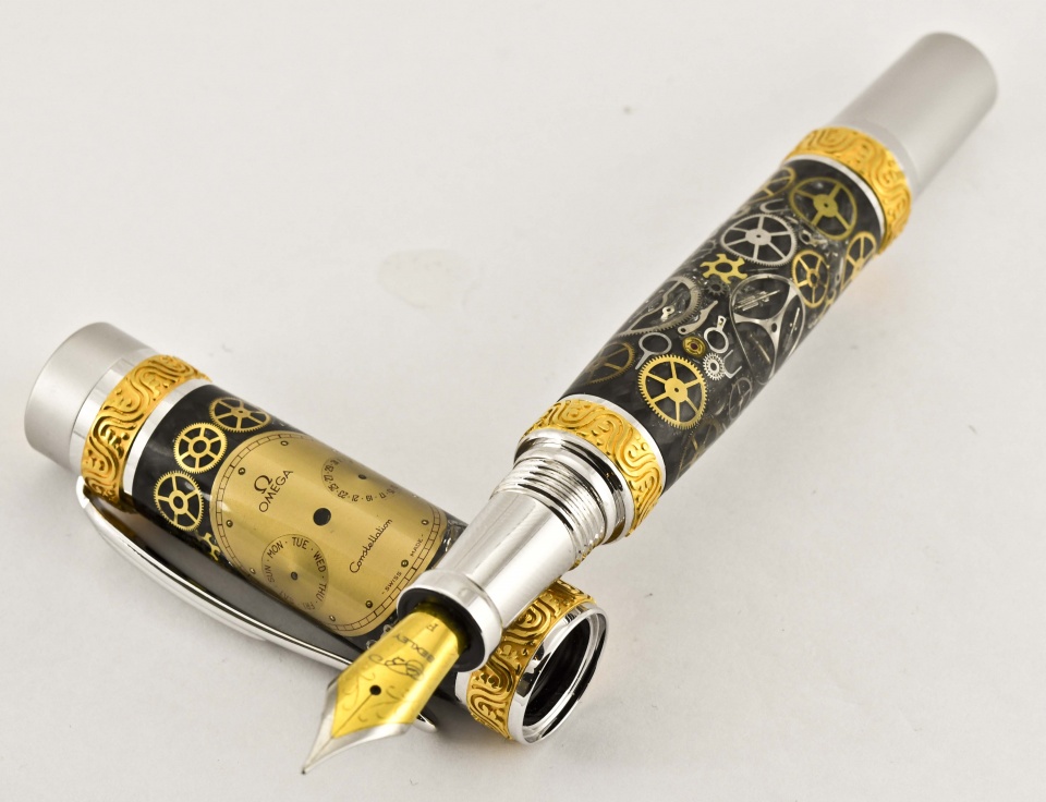 A pen I donated for a Children's Museum Gala. Beautiful blanks made by Captain G. I still cannot get over the number of parts he can put on a piece of carbon fiber. Truly is absolutely amazing. Sports a two tone Bexley fine nib. Capt G did most of the work. I just tried not to hit the parts. Doc