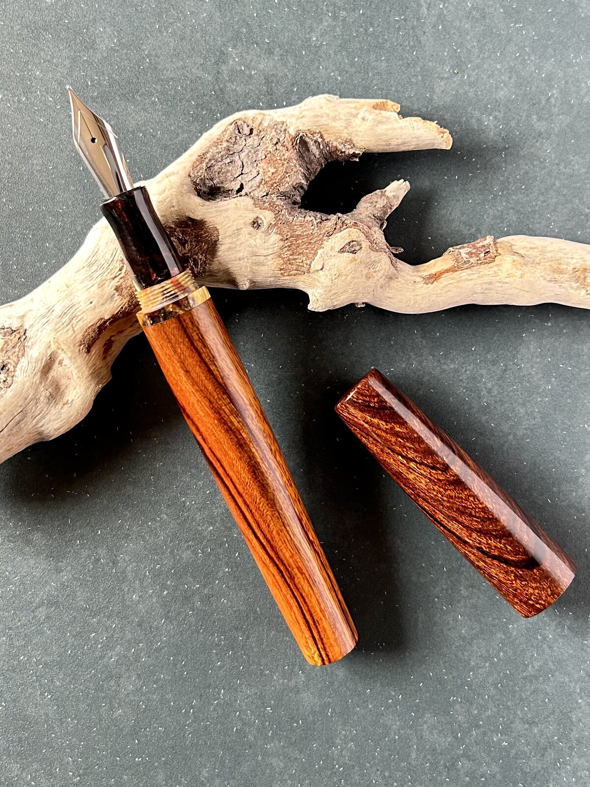 Thank you! Yes, he has a feel for "man pens." He's wanted to work with wood for quite awhile, but is always trying to help me with my learning curve and whoopsies! We are trying to stockpile him a bit of wood so he can do his thing.Beautiful pen! Tell him he has a winner, there! Is that goncalo alves wood? Your husband has an eye for the kind of pen that appeals to men, for sure!![]()
