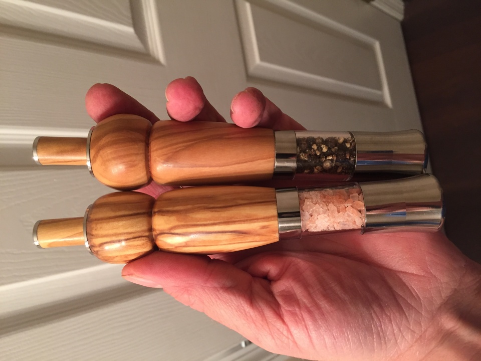 I made a set of these One Handed Top Salt\Pepper Mills for my Parenrs for Christmas. I made both out of Olive Wood. I think they are really going to like them.