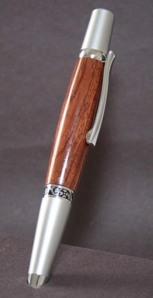 I use some of the things Evelyn got me for Christmas. Some of the blanks she got me, the wood river pen vise, the wood river pen mill set, the milescraft pen press and one of the wall street II. The slimline is made form birdseye maple (It for an order I have) I have never worked with birdseye maple before it turns and finishes really nice, the cigars are from red river gum and jatoba both turn nice and take a nice finish (one of which is for an order I have) and the wall street II is Bubinga which is one of Evelyn's favorite woods. All and finished with 5 coats of hut crystal coat. The cigar kit I got off ebay a set of 10 kits, bushings and 3 extra tubes for about $35.00. As always any and call comments are welcome.