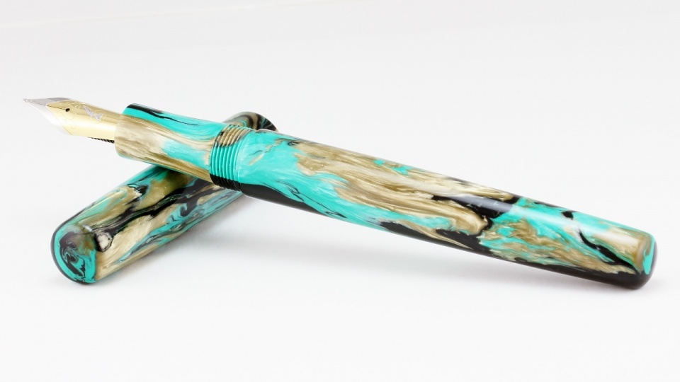The first pen is an entry in the Pretty Resin contest that happened to win. I used a blank that I purchased years ago from Jonathon Brooks. It is from his vintage series of blanks. Jonathon Brooks is really one of my favorite blank makers. I have made a ton of pens from his blanks. I still hold on to a few of his blanks for fear that I will run out of the PR blanks he used to make. He mostly makes Alumilite blanks now and I think they are mostly for custom pen makers but I could be wrong. Here are some additional photos of my entry: