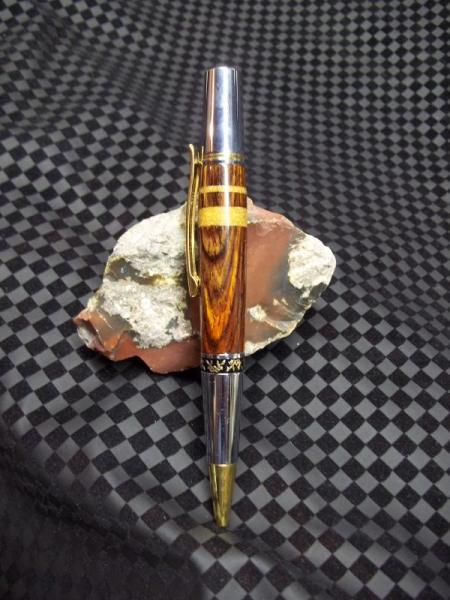 "I tried something different today and before I build the pen, I was hoping to get some opinions about how it looks. I turned the cocobolo piece then cut the grooves with a parting tool then filled them with embossing powder and CA. I kind of like the result but wonder what all of you think."