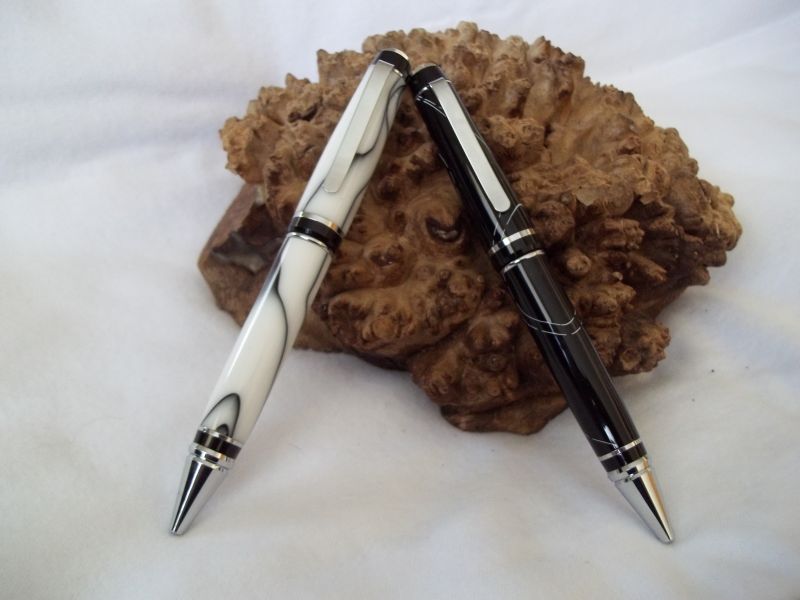 This has been my weekend doings. 2 cigar pens dressed in black and white acrylic. I am really happy with the outcome. Opinions always welcome!